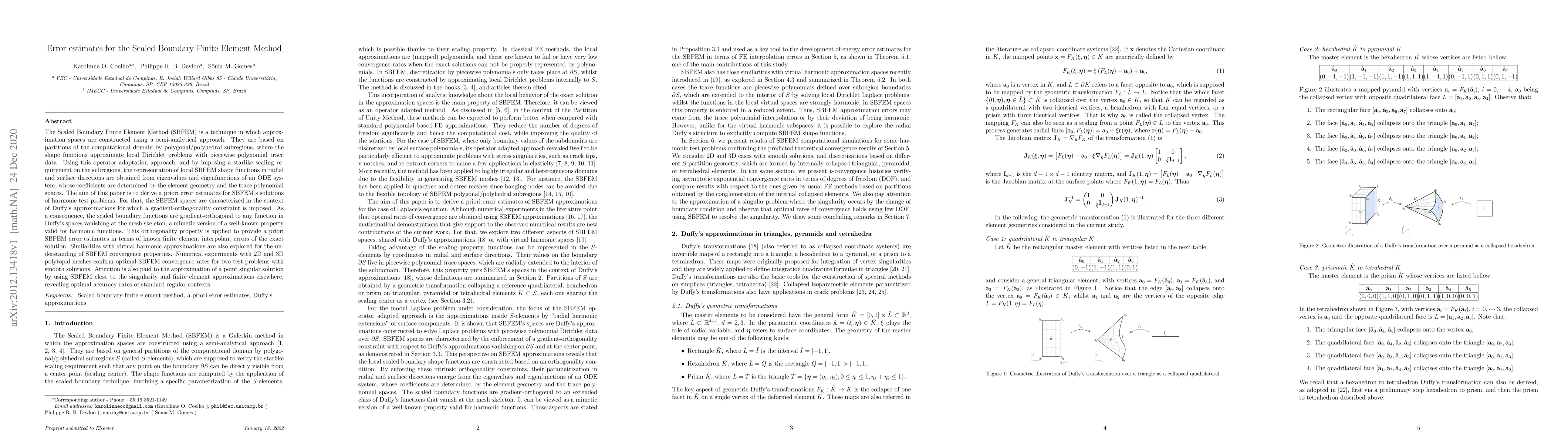 The Scaled Boundary Finite Element Method (SBFEM) is a technique in which approximation spaces are constructed using a semi-analytical approach. They are based on partitions of the computational domain by polygonal/polyhedral subregions, where the shape functions approximate local Dirichlet problems with piecewise polynomial trace data. Using this operator adaptation approach, and by imposing a starlike scaling requirement on the subregions, the representation of local SBFEM shape functions in radial and surface directions are obtained from eigenvalues and eigenfunctions of an ODE system, whose coefficients are determined by the element geometry and the trace polynomial spaces. The aim of this paper is to derive a priori error estimates for SBFEM's solutions of harmonic test problems. For that, the SBFEM spaces are characterized in the context of Duffy's approximations for which a gradient-orthogonality constraint is imposed. As a consequence, the scaled boundary functions are gradient-orthogonal to any function in Duffy's spaces vanishing at the mesh skeleton, a mimetic version of a well-known property valid for harmonic functions. This orthogonality property is applied to provide a priori SBFEM error estimates in terms of known finite element interpolant errors of the exact solution. Similarities with virtual harmonic approximations are also explored for the understanding of SBFEM convergence properties. Numerical experiments with 2D and 3D polytopal meshes confirm optimal SBFEM convergence rates for two test problems with smooth solutions. Attention is also paid to the approximation of a point singular solution by using SBFEM close to the singularity and finite element approximations elsewhere, revealing optimal accuracy rates of standard regular contexts.