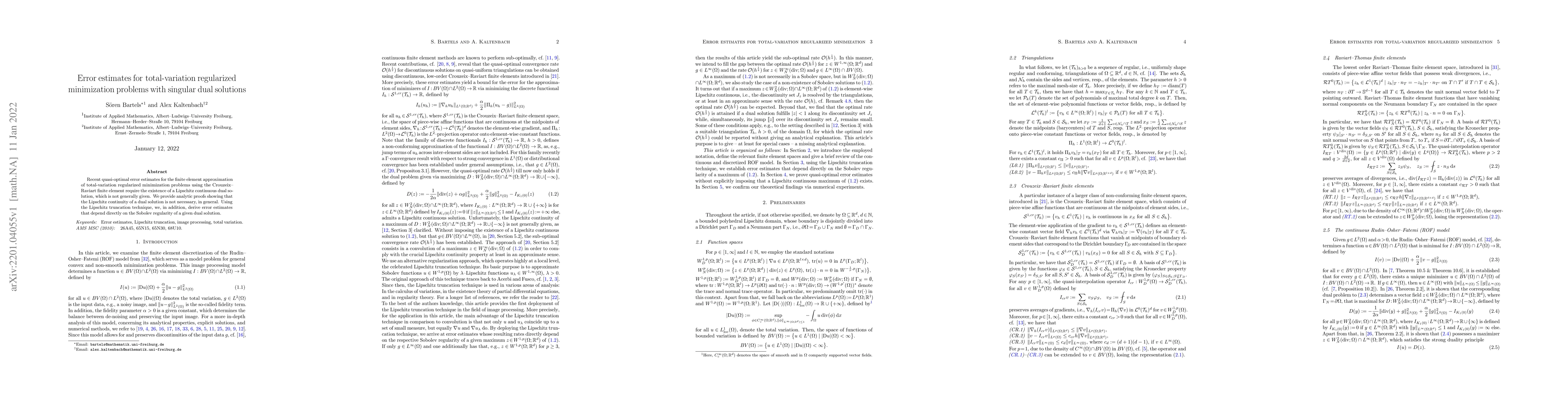This paper removes the requirement of Lipschitz continuity for dual solutions in error estimates for total-variation regularized minimization problems, providing new analytic proofs. It also introduces error estimates based on the Sobolev regularity of dual solutions using the Lipschitz truncation technique.
