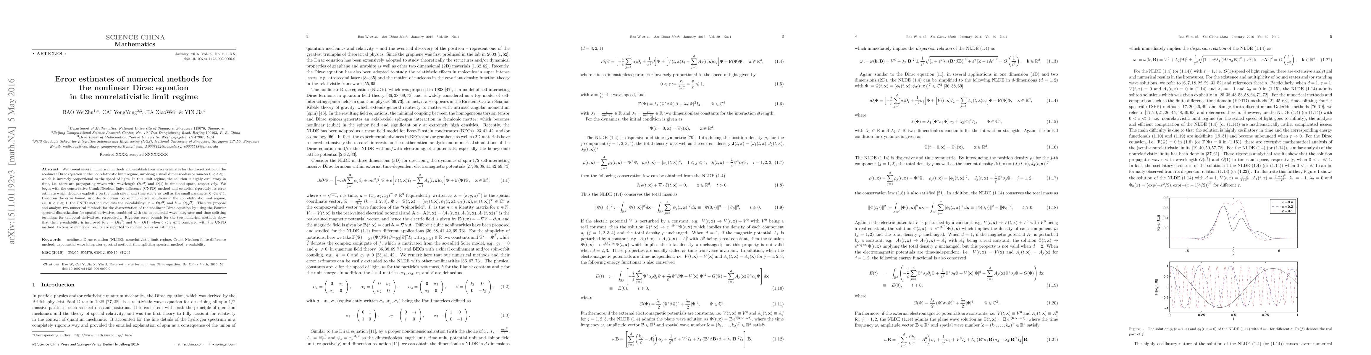 This paper presents numerical methods for solving the nonlinear Dirac equation in the nonrelativistic limit regime, establishing error estimates for these methods. The conservative Crank-Nicolson finite difference method requires $\tau=O(\varepsilon^3)$ and $h=O(\sqrt{\varepsilon})$ for accuracy, while two alternative methods improve scalability to $\tau=O(\varepsilon^2)$ and $h=O(1)$.