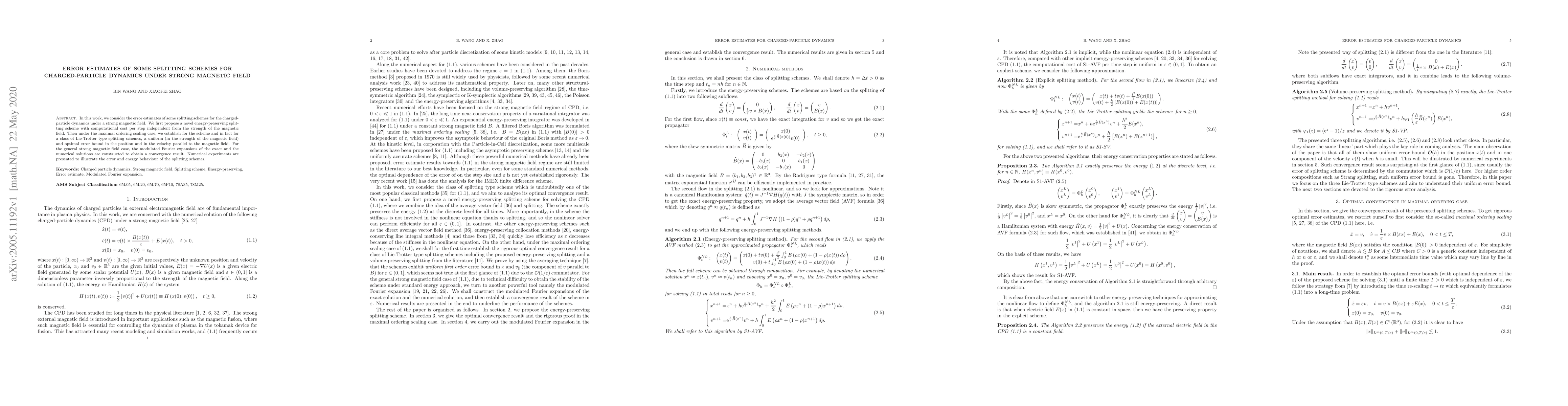 The research introduces an energy-preserving splitting scheme for charged-particle dynamics under strong magnetic fields, with computational costs independent of field strength. It establishes uniform and optimal error bounds for this and other Lie-Trotter schemes, and presents modulated Fourier expansion-based convergence results for general strong magnetic fields. Numerical experiments support the findings.