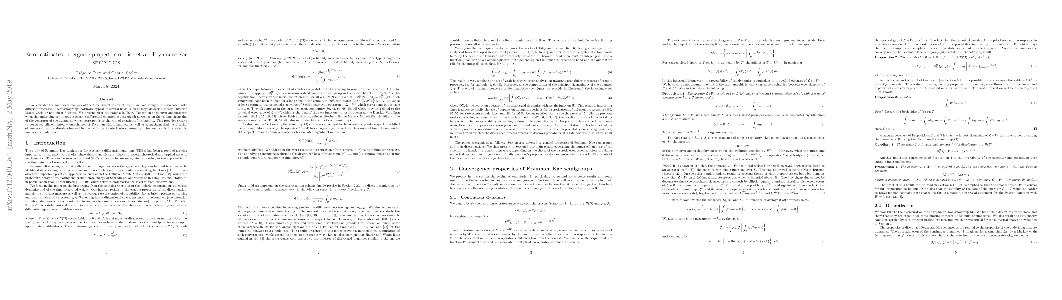 This paper provides error estimates for discretized Feynman-Kac semigroups linked to diffusion processes, focusing on invariant measures and the leading eigenvalue of the generator. It offers criteria for efficient integration schemes and supports observed numerical results from the Diffusion Monte Carlo community through theoretical analysis and simulations.