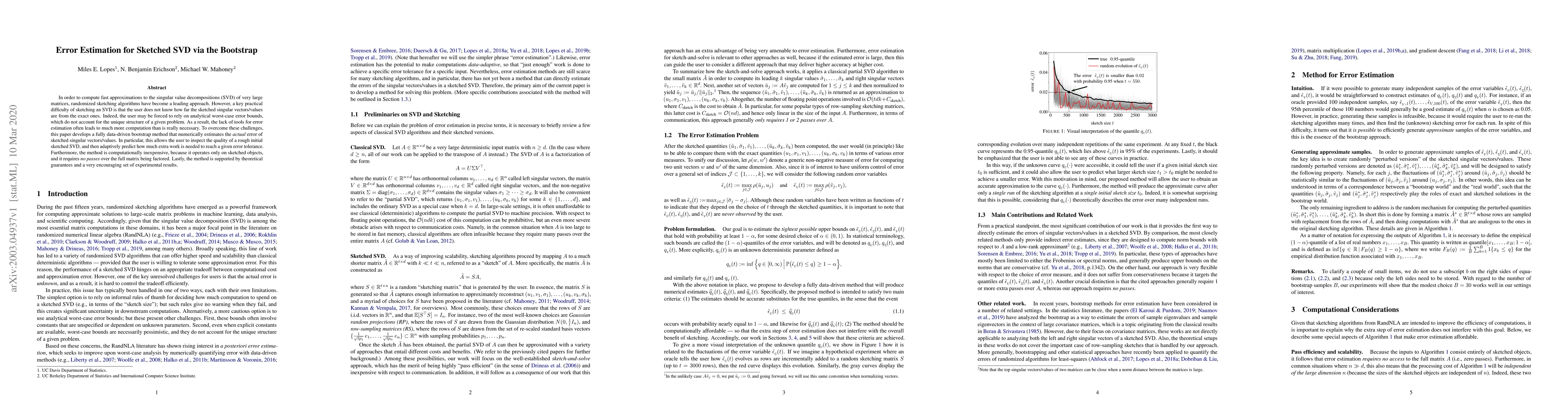 This paper introduces a bootstrap method for estimating the error of sketched SVD approximations, enabling users to adaptively determine the necessary computational effort to achieve desired accuracy without relying on worst-case bounds. The method is efficient and requires no full matrix passes, supported by theoretical guarantees and positive experimental outcomes.