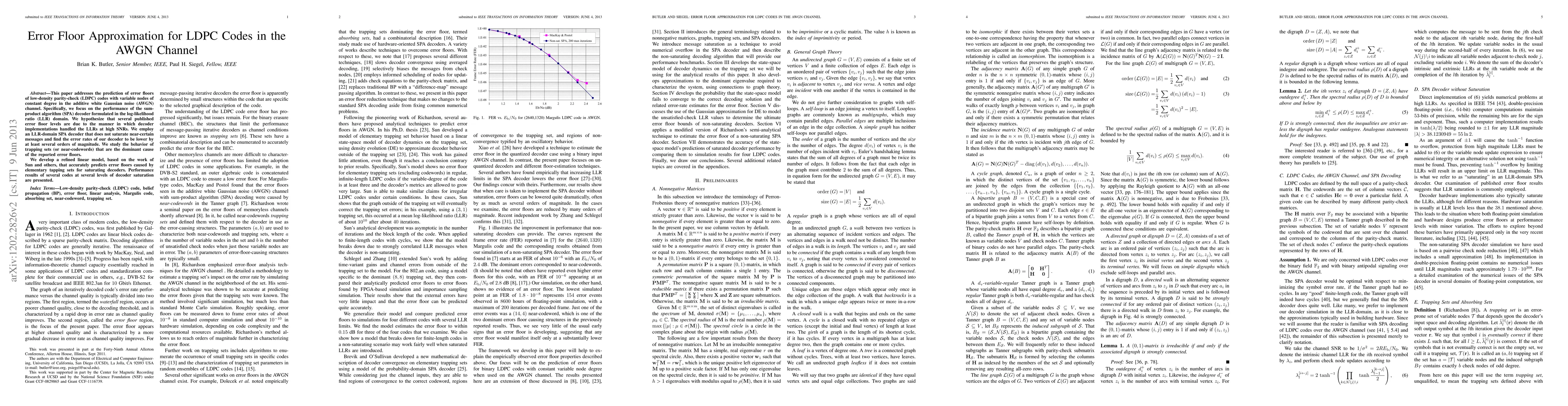 This paper investigates the error floors of LDPC codes in the AWGN channel, attributing them to decoder implementation issues at high SNRs. It proposes a refined linear model to predict error floors and demonstrates significantly lower error rates using a non-saturating sum-product algorithm decoder.
