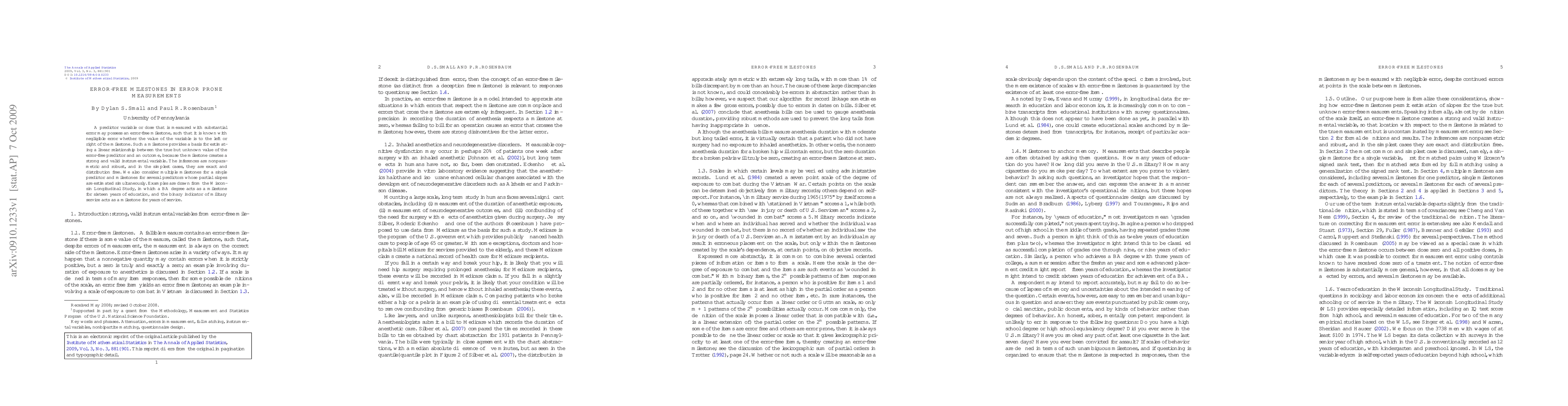 A predictor variable or dose that is measured with substantial error may possess an error-free milestone, such that it is known with negligible error whether the value of the variable is to the left or right of the milestone. Such a milestone provides a basis for estimating a linear relationship between the true but unknown value of the error-free predictor and an outcome, because the milestone creates a strong and valid instrumental variable. The inferences are nonparametric and robust, and in the simplest cases, they are exact and distribution free. We also consider multiple milestones for a single predictor and milestones for several predictors whose partial slopes are estimated simultaneously. Examples are drawn from the Wisconsin Longitudinal Study, in which a BA degree acts as a milestone for sixteen years of education, and the binary indicator of military service acts as a milestone for years of service.