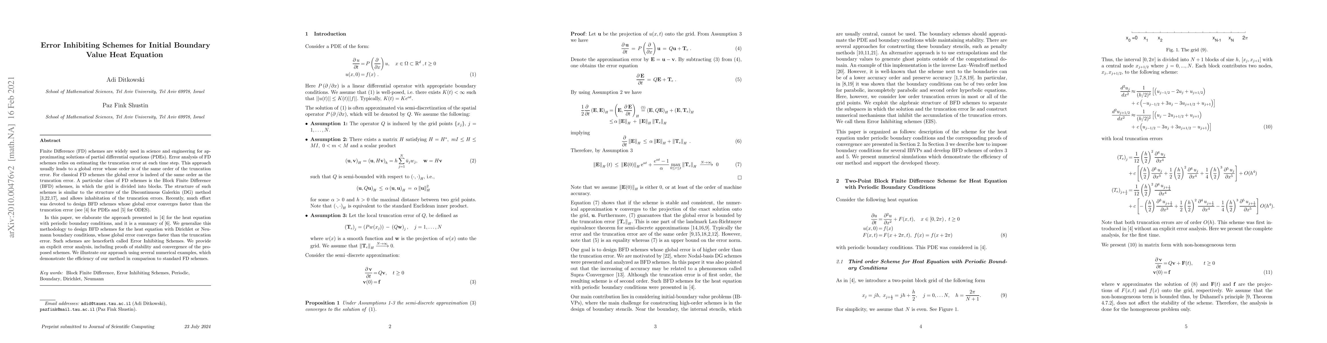 New finite difference schemes called Error Inhibiting Schemes are designed to reduce error faster than traditional methods for solving partial differential equations like the heat equation with periodic boundary conditions.