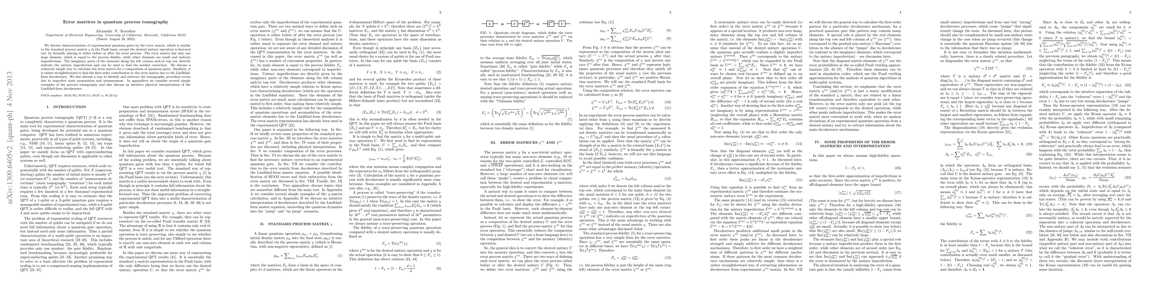 This paper introduces the error matrix for characterizing experimental quantum gates, distinguishing it from the standard process matrix by factoring out the desired unitary operation. It highlights how the error matrix can reveal imperfections and provides methods for calculating it for gate compositions and for correcting decoherence effects.