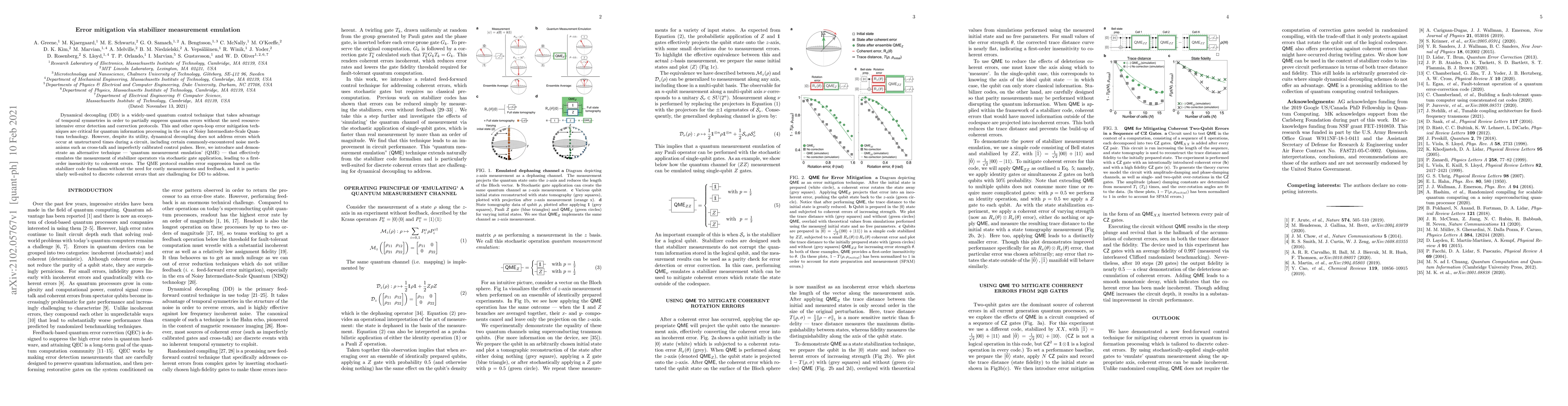 This paper proposes a novel error mitigation technique called quantum measurement emulation (QME) that emulates stabilizer measurements to suppress quantum errors without resource-intensive feedback. Unlike dynamical decoupling, QME effectively addresses unstructured errors, including cross-talk and imperfect control pulses, by leveraging stochastic gate applications.