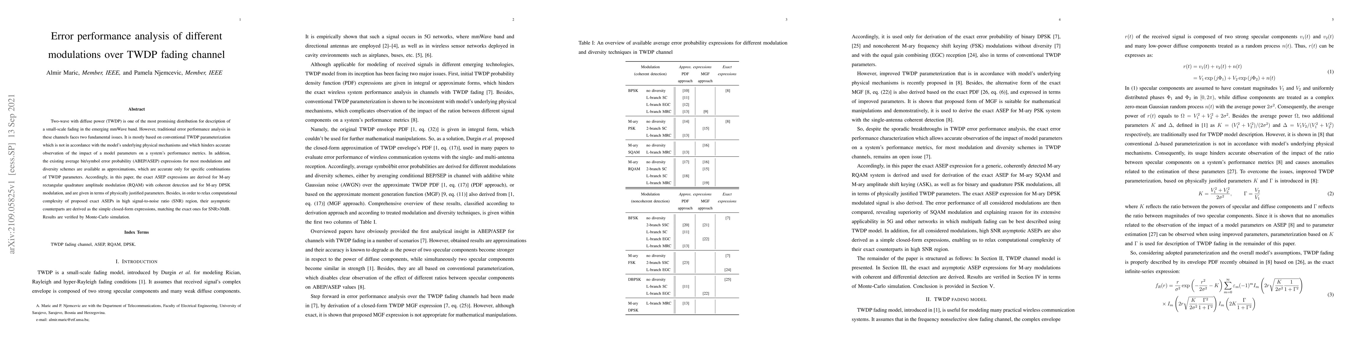 This paper analyzes error performance in TWDP fading channels for two modulation schemes: M-ary RQAM with coherent detection and M-ary DPSK modulation, providing exact expressions for bit/symbol error probabilities that capture physical mechanisms.