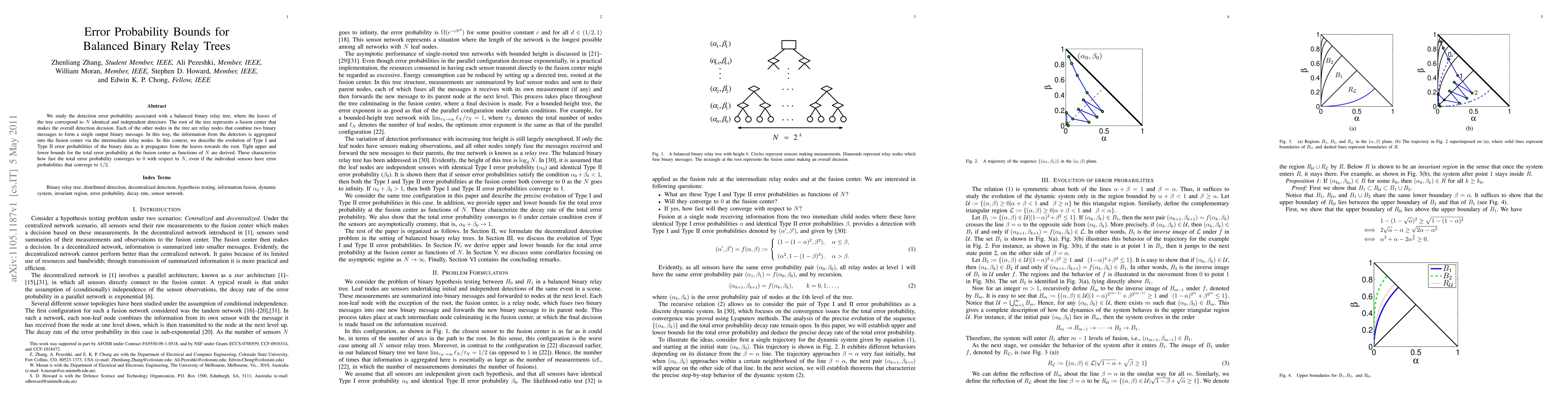 Researchers study the detection error probability of a balanced binary relay tree, deriving tight upper and lower bounds for total error probability at the fusion center as a function of N, the number of detectors.