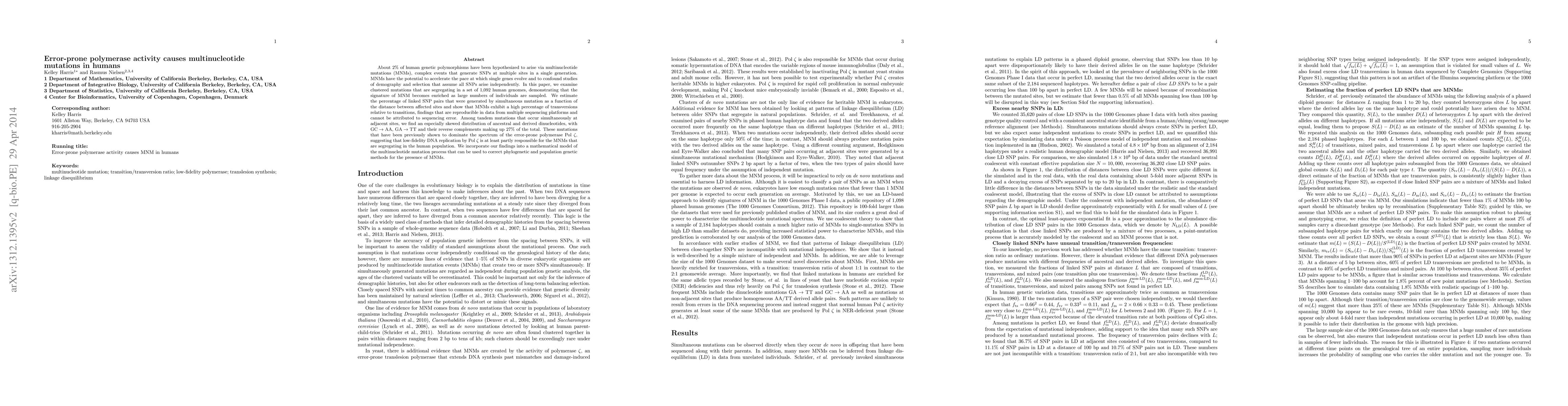About 2% of human genetic polymorphisms have been hypothesized to arise via multinucleotide mutations (MNMs), complex events that generate SNPs at multiple sites in a single generation. MNMs have the potential to accelerate the pace at which single genes evolve and to confound studies of demography and selection that assume all SNPs arise independently. In this paper, we examine clustered mutations that are segregating in a set of 1,092 human genomes, demonstrating that MNMs become enriched as large numbers of individuals are sampled. We leverage the size of the dataset to deduce new information about the allelic spectrum of MNMs, estimating the percentage of linked SNP pairs that were generated by simultaneous mutation as a function of the distance between the affected sites and showing that MNMs exhibit a high percentage of transversions relative to transitions. These findings are reproducible in data from multiple sequencing platforms. Among tandem mutations that occur simultaneously at adjacent sites, we find an especially skewed distribution of ancestral and derived dinucleotides, with $\textrm{GC}\to \textrm{AA}$, $\textrm{GA}\to \textrm{TT}$ and their reverse complements making up 36% of the total. These same mutations dominate the spectrum of tandem mutations produced by the upregulation of low-fidelity Polymerase $\zeta$ in mutator strains of S. cerevisiae that have impaired DNA excision repair machinery. This suggests that low-fidelity DNA replication by Pol $\zeta$ is at least partly responsible for the MNMs that are segregating in the human population, and that useful information about the biochemistry of MNM can be extracted from ordinary population genomic data. We incorporate our findings into a mathematical model of the multinucleotide mutation process that can be used to correct phylogenetic and population genetic methods for the presence of MNMs.
