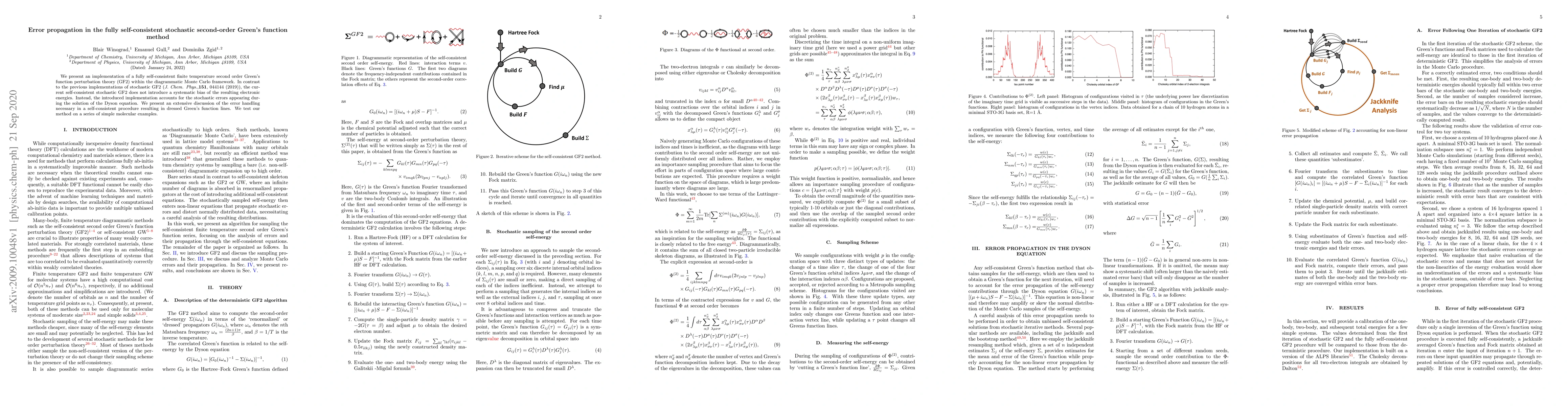 This paper introduces a fully self-consistent stochastic second-order Green's function method implemented within the diagrammatic Monte Carlo framework, which eliminates systematic biases in electronic energy calculations. It discusses error propagation and handling in the self-consistent procedure and validates the method through molecular examples.