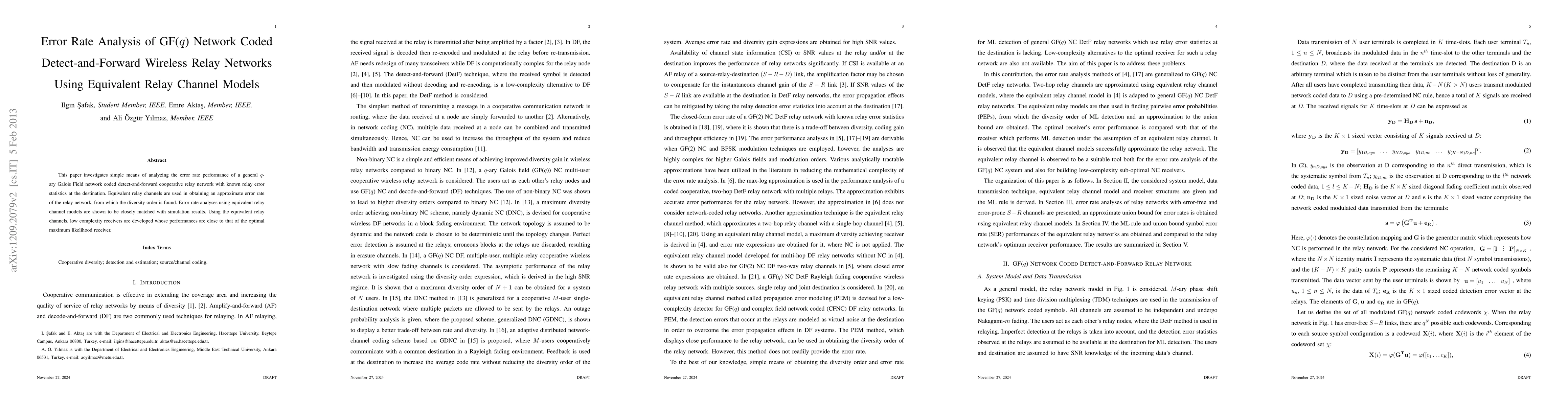 This paper analyzes the error rate of a q-ary Galois Field network coded detect-and-forward relay network using equivalent relay channel models, demonstrating close agreement with simulation results and developing low complexity receivers with performance near optimal.