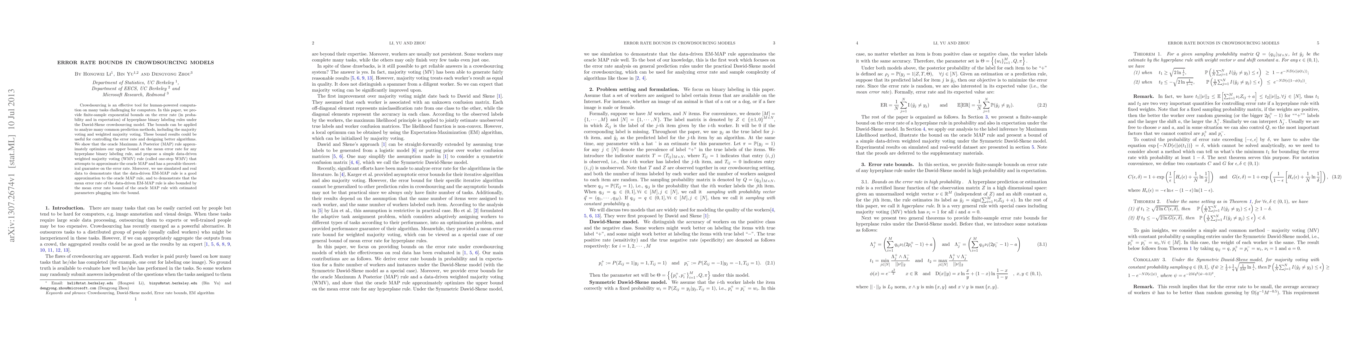 This research provides finite-sample error rate bounds for hyperplane binary labeling rules in crowdsourcing, applicable to methods like majority voting. It introduces a data-driven weighted majority voting rule, one-step WMV, approximating the optimal oracle MAP rule with provable error rate guarantees. Simulations and real data demonstrate the effectiveness of this new rule and a related EM-MAP rule in controlling error rates.