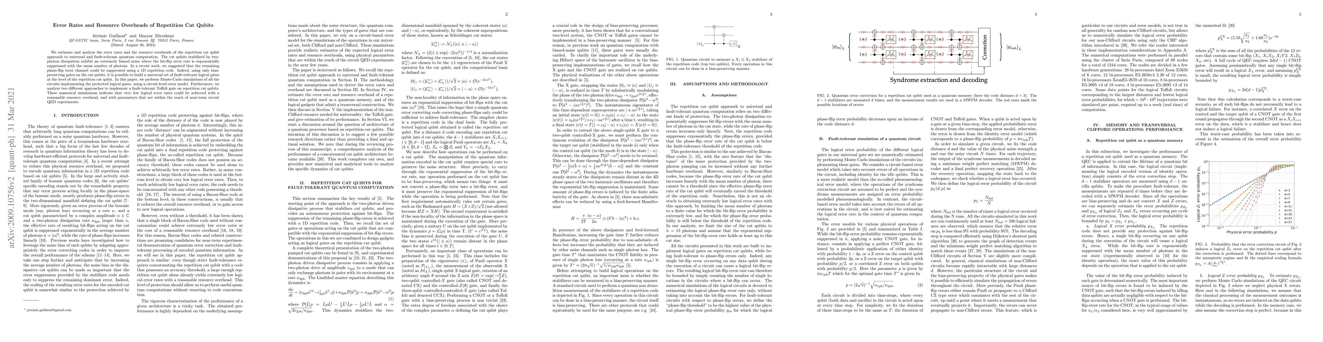 This paper evaluates the error rates and resource overheads of the repetition cat qubit method for fault-tolerant quantum computation, showing that it can achieve low logical error rates with manageable resource costs, suitable for near-term circuit QED experiments. Monte-Carlo simulations confirm the effectiveness of the proposed 1D repetition code in suppressing phase-flip errors.