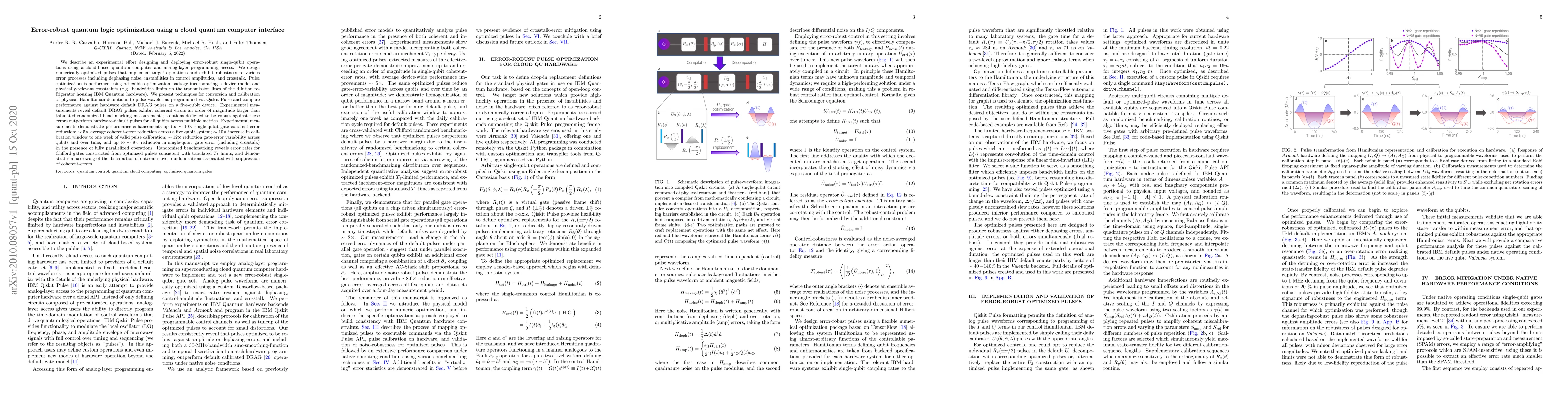 Researchers developed error-robust quantum logic optimization using a cloud-based quantum computer, achieving up to 10x reduction in coherent errors and 12x reduction in gate error variability.