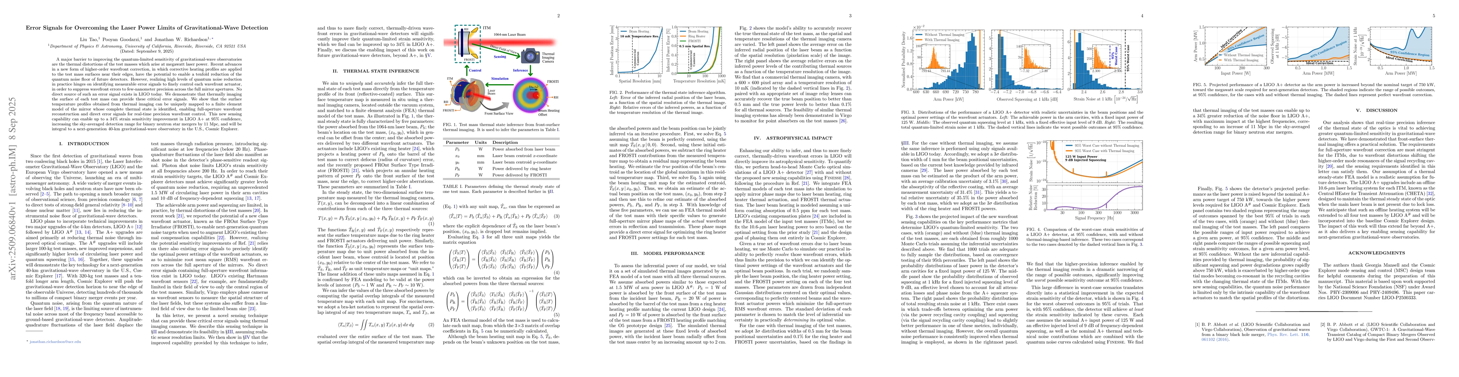 A major barrier to improving the quantum-limited sensitivity of gravitational-wave observatories are the thermal distortions of the test masses which arise at megawatt laser power. Recent advances in a new form of higher-order wavefront correction, in which corrective heating profiles are applied to the test mass surfaces near their edges, have the potential to enable a tenfold reduction of the quantum noise floor of future detectors. However, realizing high levels of quantum noise reduction in practice hinges on identifying measurable error signals to finely control each wavefront actuator, in order to suppress wavefront errors to few-nanometer precision across the full mirror apertures. No direct source of such an error signal exists in LIGO today. We demonstrate that thermally imaging the surface of each test mass can provide these critical error signals. We show that the surface temperature profiles obtained from thermal imaging can be uniquely mapped to a finite element model of the mirror whose complete thermal state is identified, enabling full-aperture wavefront reconstruction and direct error signals for real-time precision wavefront control. This new sensing capability can enable up to a 34% strain sensitivity improvement in LIGO A+ at 95% confidence, increasing the sky-averaged detection range for binary neutron star mergers by 11 Mpc, and will be integral to a next-generation 40-km gravitational-wave observatory in the U.S., Cosmic Explorer.