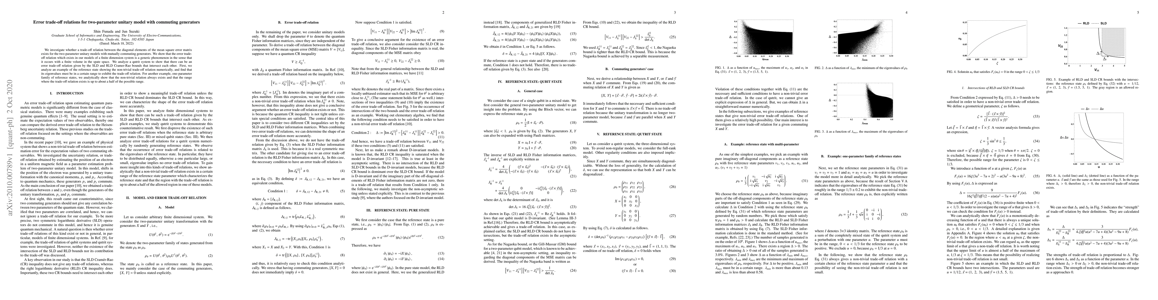 This paper explores the existence of error trade-off relations in two-parameter unitary models with commuting generators, demonstrating that such relations are a generic phenomenon in finite-dimensional systems. It analytically and numerically shows that a qutrit system can exhibit these relations, particularly through the intersection of SLD and RLD Cramer-Rao bounds.