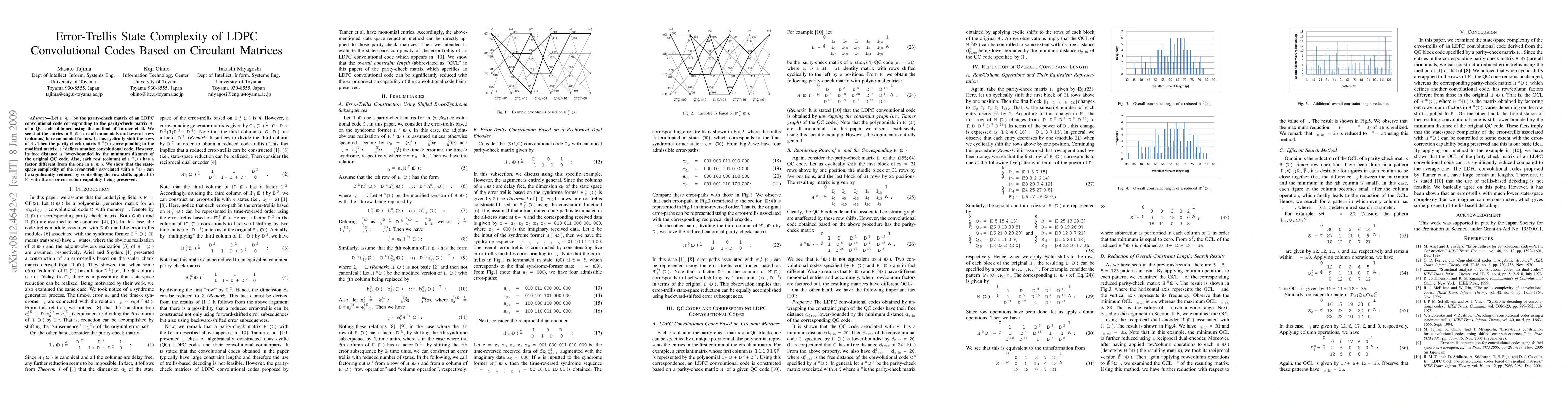 The research examines the error-trellis state complexity of LDPC convolutional codes based on circulant matrices, reducing state-space complexity by controlling row shifts in the parity-check matrix while preserving error-correction capability.