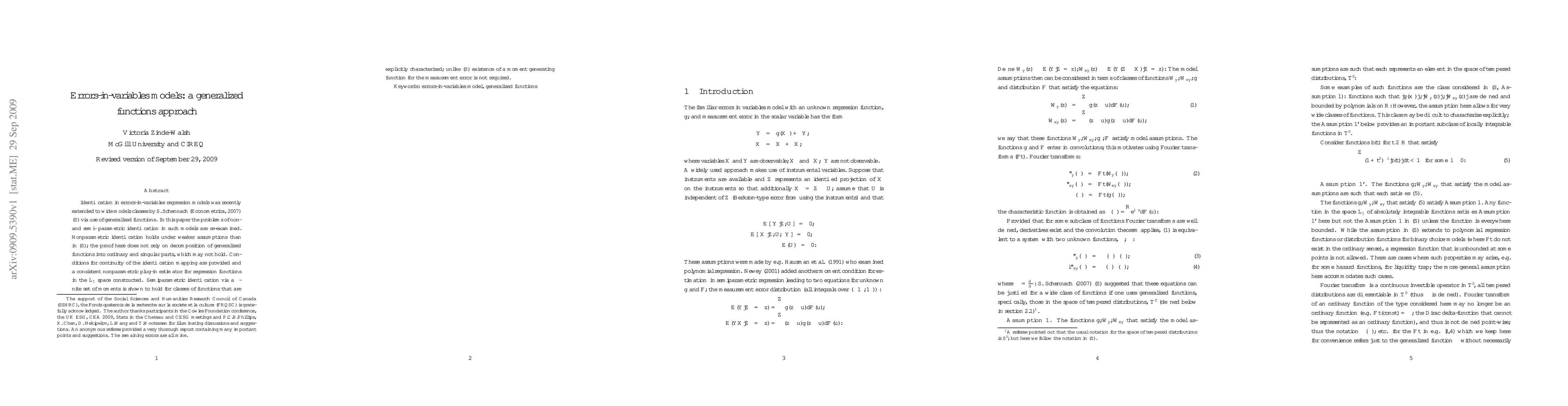 This paper re-examines non- and semi-parametric identification in errors-in-variables regression models using generalized functions, proposing a consistent nonparametric plug-in estimator and demonstrating semiparametric identification via a finite set of moments without requiring a moment generating function for measurement errors.