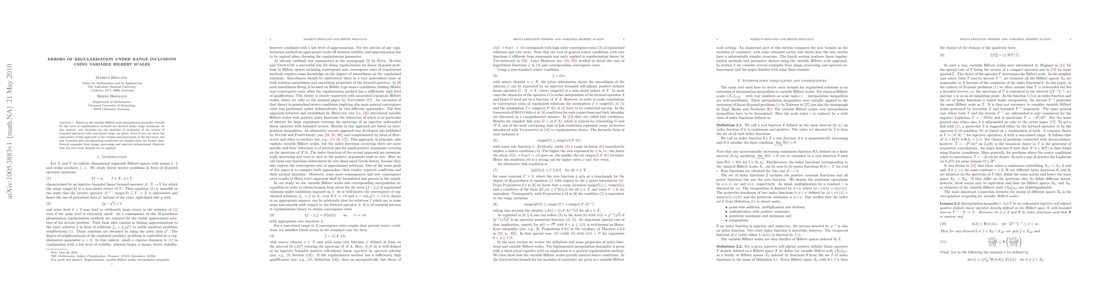 This paper derives new error bounds for regularisation methods using variable Hilbert scale interpolation inequalities under range inclusions, providing simpler formulae for the modulus of continuity of inverse operators. Examples from image processing and spectral enhancement demonstrate the practical application of these improved error bounds.