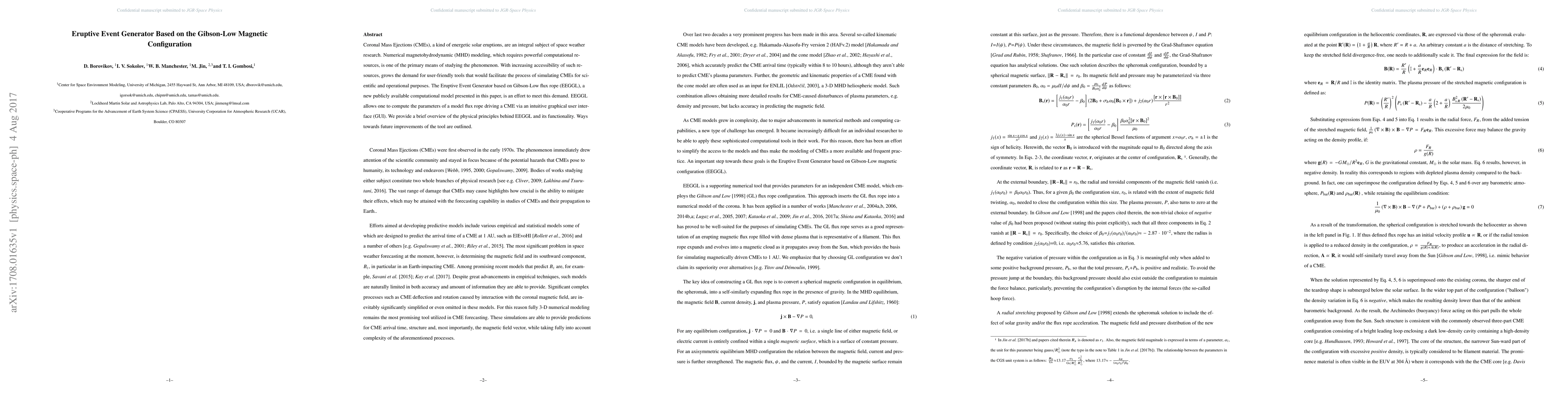 Coronal Mass Ejections (CMEs), a kind of energetic solar eruptions, are an integral subject of space weather research. Numerical magnetohydrodynamic (MHD) modeling, which requires powerful computational resources, is one of the primary means of studying the phenomenon. With increasing accessibility of such resources, grows the demand for user-friendly tools that would facilitate the process of simulating CMEs for scientific and operational purposes. The Eruptive Event Generator based on Gibson-Low flux rope (EEGGL), a new publicly available computational model presented in this paper, is an effort to meet this demand. EEGGL allows one to compute the parameters of a model flux rope driving a CME via an intuitive graphical user interface (GUI). We provide a brief overview of the physical principles behind EEGGL and its functionality. Ways towards future improvements of the tool are outlined.