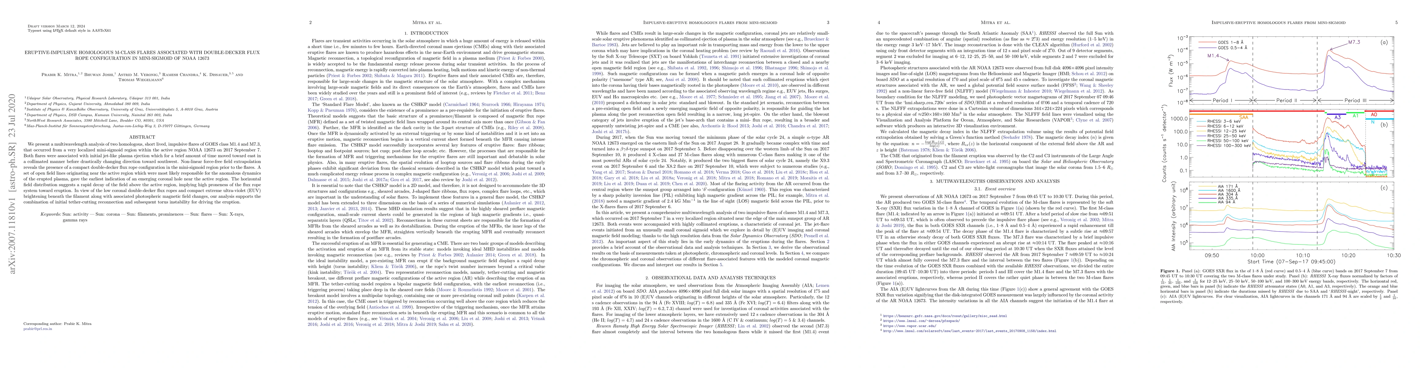 This study analyzes two M-class solar flares from a mini-sigmoid region in NOAA 12673, revealing a double-decker flux rope configuration prior to the eruptions. The flares were driven by tether-cutting reconnection and torus instability, with plasma ejections showing anomalous dynamics.