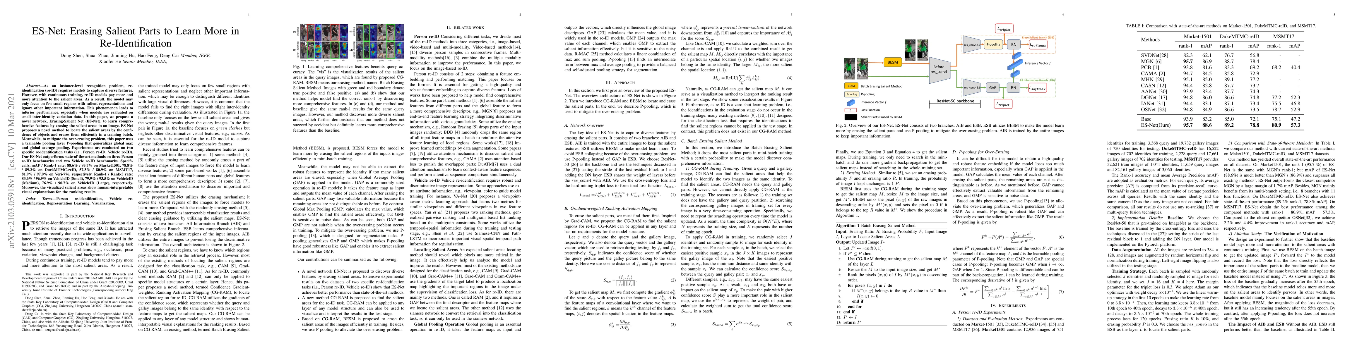 ES-Net proposes a novel method to improve re-identification performance by erasing salient areas to encourage models to learn comprehensive features, achieving state-of-the-art results on multiple re-ID benchmarks. The method includes a trainable pooling layer to mitigate over-erasing and provides human-interpretable visual explanations.