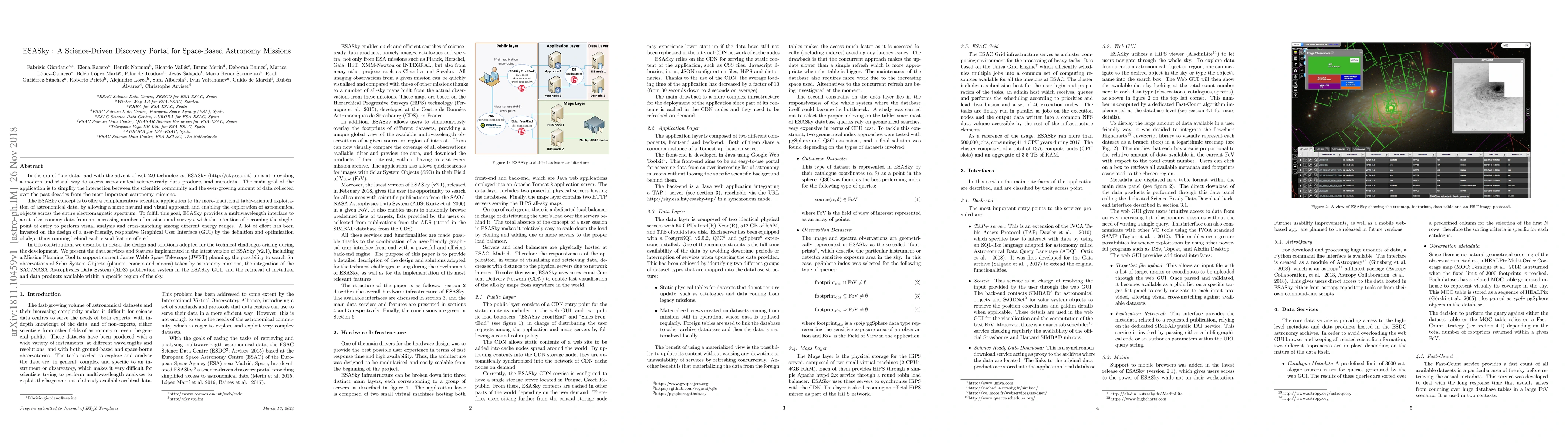 ESASky is a modern, visual discovery portal designed to simplify access to astronomical science-ready data from space missions, offering a user-friendly interface for exploring multiwavelength data across the electromagnetic spectrum. The latest version includes tools for mission planning, observation searches, and integration with the SAO/NASA Astrophysics Data System.