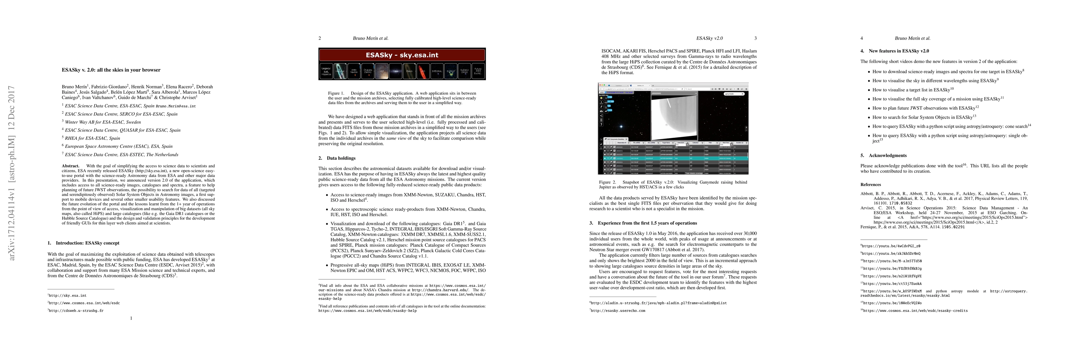 ESA's ESASky v2.0 portal provides easy access to astronomy data, including images, catalogues, and spectra, and introduces features like mobile device support and search functionality for Solar System Objects.