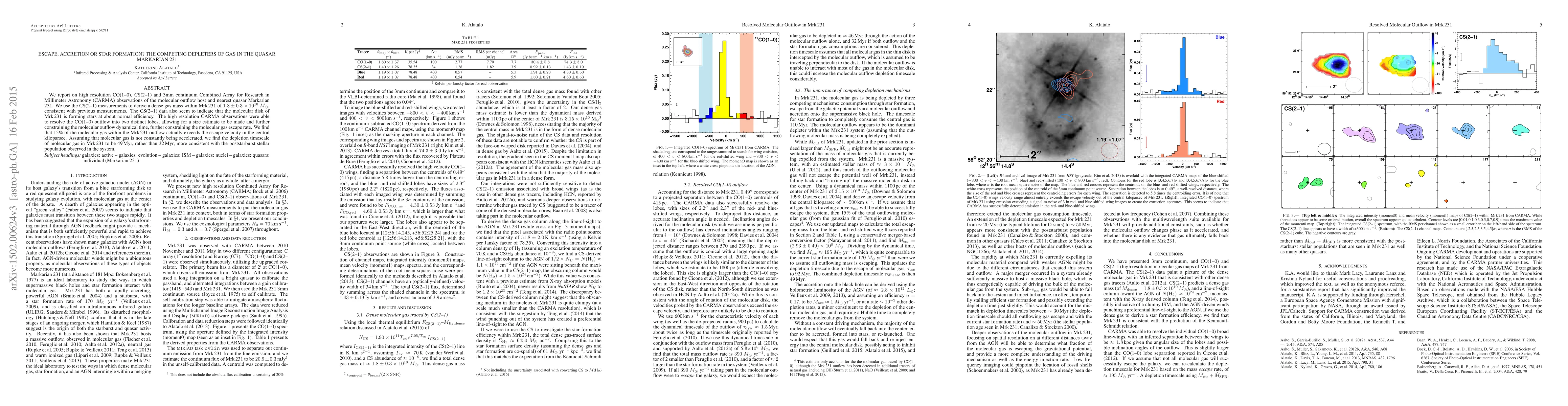 New observations of quasar Markarian 231 reveal that only 15% of its molecular gas escapes into space, while the rest is likely forming stars or staying in a disk, with depletion timescales suggesting a post-starburst stellar population.