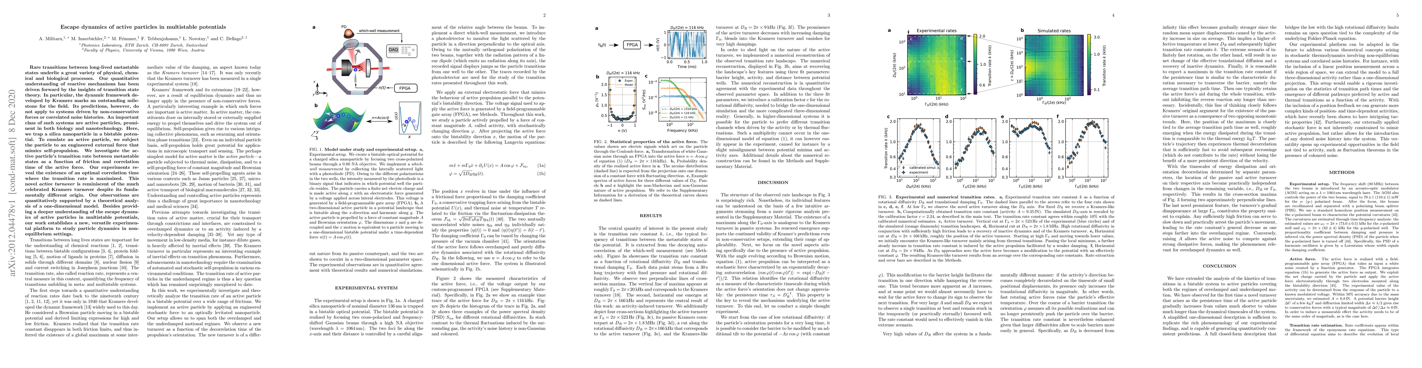 This research explores escape dynamics of artificially 'active' particles trapped in bistable potentials, revealing an 'active turnover' optimizing transition rates between metastable states. The study combines experimental observations with theoretical analysis, establishing a platform for non-equilibrium particle dynamics research.