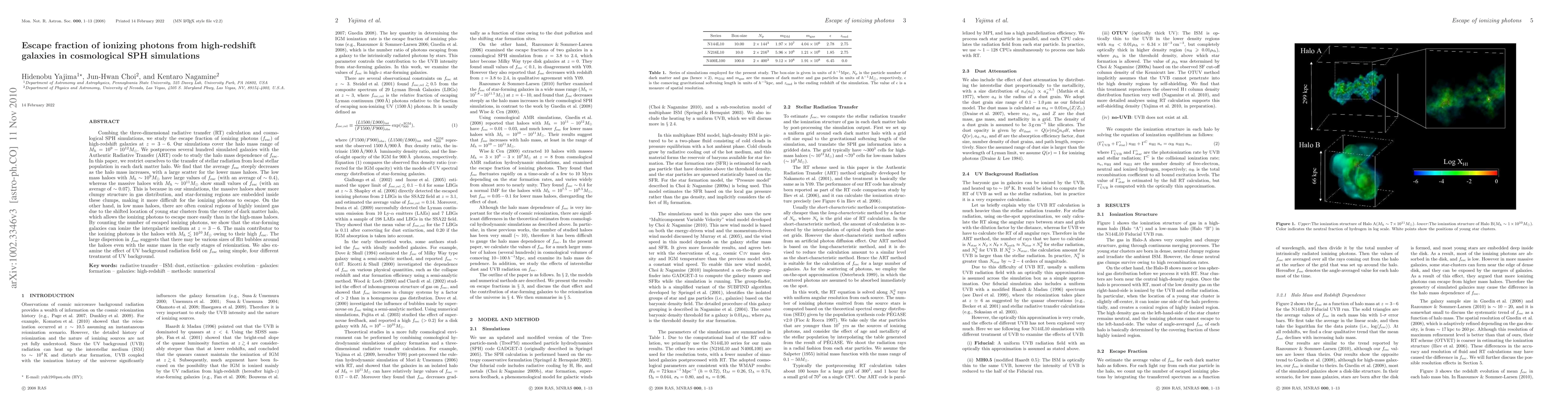 The paper presents detailed three-dimensional radiative transfer calculations combined with cosmological SPH simulations to study the escape fraction of ionizing photons from high-redshift galaxies.