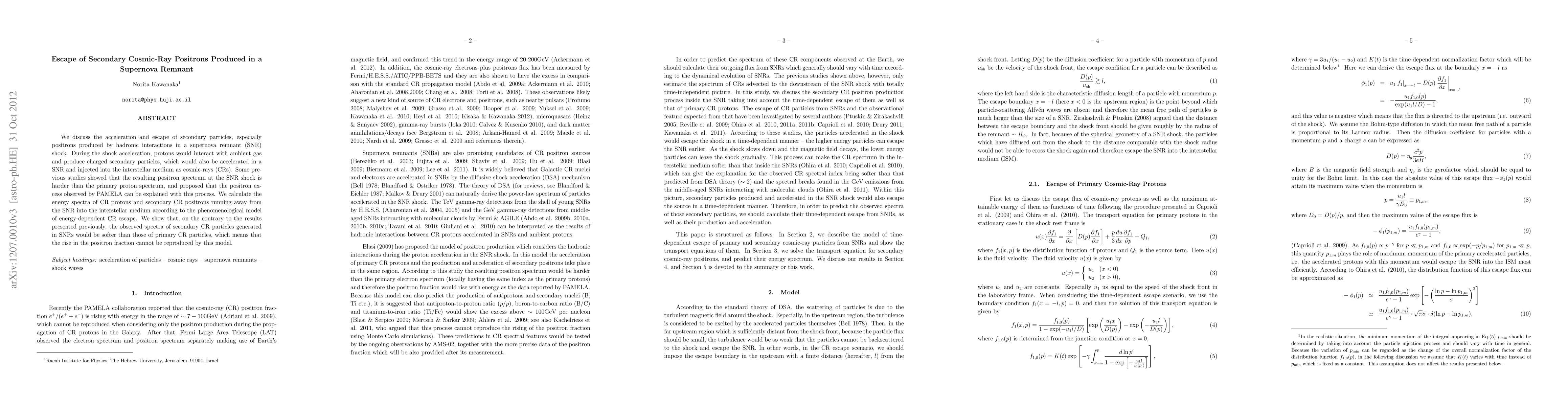 A study found that secondary cosmic-ray positrons produced in supernova remnants do not support a previously proposed model for their acceleration and escape, suggesting the rise in positron fraction cannot be fully explained by this process.