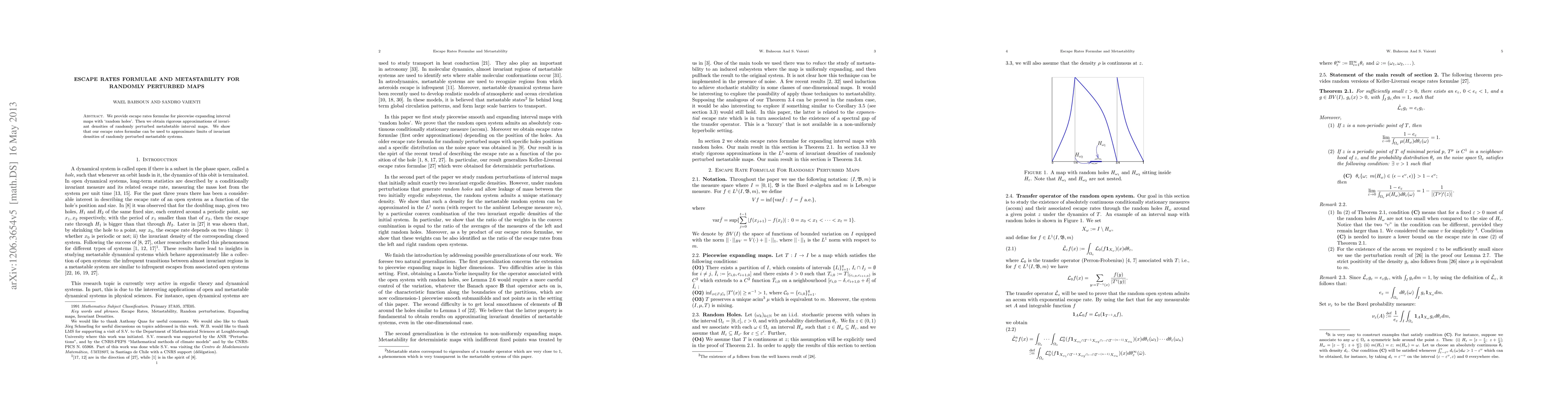 The paper introduces and proves rigorous formulae for escape rates and provides methods to approximate invariant densities for metastable systems under random perturbations.