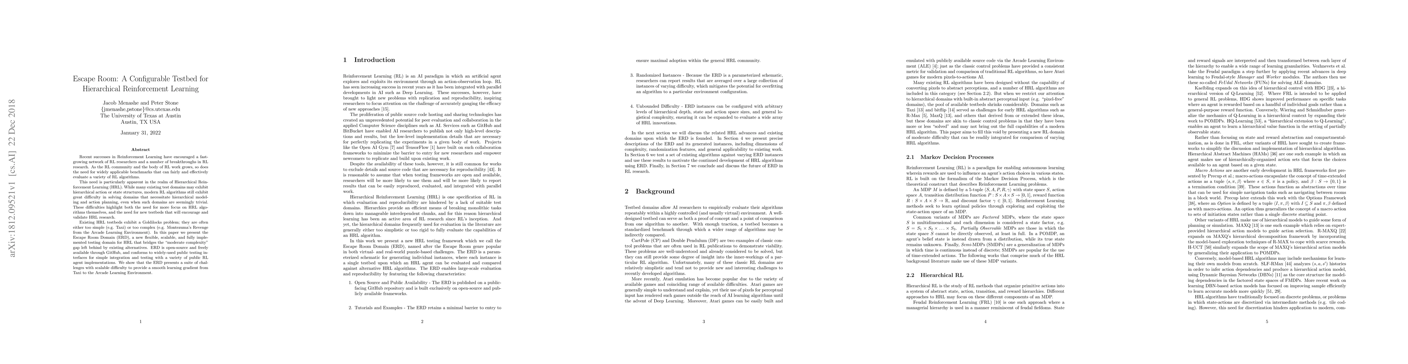 Recent successes in Reinforcement Learning have encouraged a fast-growing network of RL researchers and a number of breakthroughs in RL research. As the RL community and the body of RL work grows, so does the need for widely applicable benchmarks that can fairly and effectively evaluate a variety of RL algorithms. This need is particularly apparent in the realm of Hierarchical Reinforcement Learning (HRL). While many existing test domains may exhibit hierarchical action or state structures, modern RL algorithms still exhibit great difficulty in solving domains that necessitate hierarchical modeling and action planning, even when such domains are seemingly trivial. These difficulties highlight both the need for more focus on HRL algorithms themselves, and the need for new testbeds that will encourage and validate HRL research. Existing HRL testbeds exhibit a Goldilocks problem; they are often either too simple (e.g. Taxi) or too complex (e.g. Montezuma's Revenge from the Arcade Learning Environment). In this paper we present the Escape Room Domain (ERD), a new flexible, scalable, and fully implemented testing domain for HRL that bridges the "moderate complexity" gap left behind by existing alternatives. ERD is open-source and freely available through GitHub, and conforms to widely-used public testing interfaces for simple integration and testing with a variety of public RL agent implementations. We show that the ERD presents a suite of challenges with scalable difficulty to provide a smooth learning gradient from Taxi to the Arcade Learning Environment.