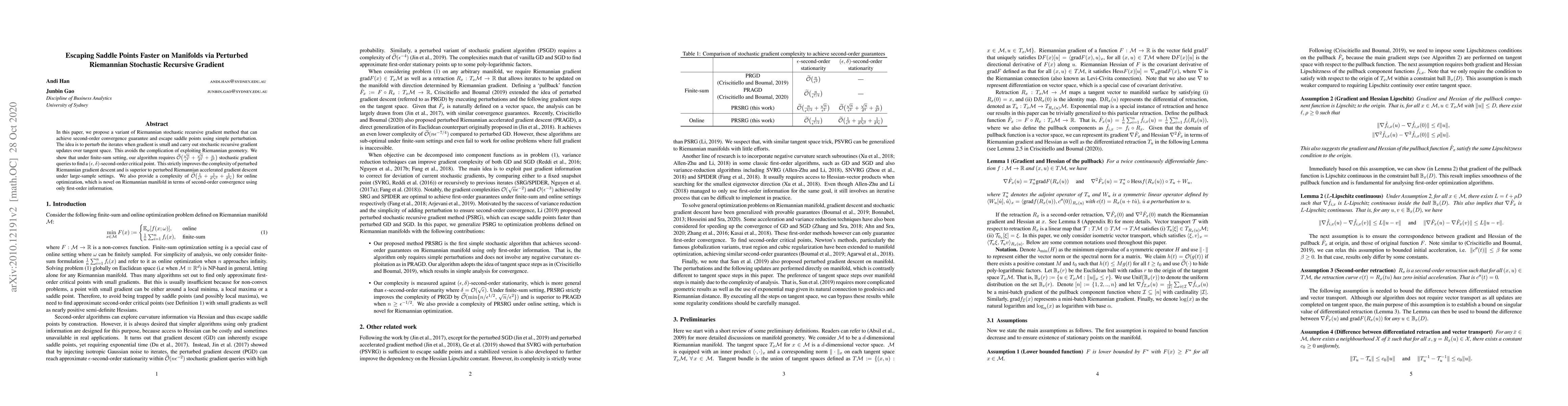 In this paper, we propose a variant of Riemannian stochastic recursive gradient method that can achieve second-order convergence guarantee and escape saddle points using simple perturbation. The idea is to perturb the iterates when gradient is small and carry out stochastic recursive gradient updates over tangent space. This avoids the complication of exploiting Riemannian geometry. We show that under finite-sum setting, our algorithm requires $\widetilde{\mathcal{O}}\big( \frac{ \sqrt{n}}{\epsilon^2} + \frac{\sqrt{n} }{\delta^4} + \frac{n}{\delta^3}\big)$ stochastic gradient queries to find a $(\epsilon, \delta)$-second-order critical point. This strictly improves the complexity of perturbed Riemannian gradient descent and is superior to perturbed Riemannian accelerated gradient descent under large-sample settings. We also provide a complexity of $\widetilde{\mathcal{O}} \big( \frac{1}{\epsilon^3} + \frac{1}{\delta^3 \epsilon^2} + \frac{1}{\delta^4 \epsilon} \big)$ for online optimization, which is novel on Riemannian manifold in terms of second-order convergence using only first-order information.