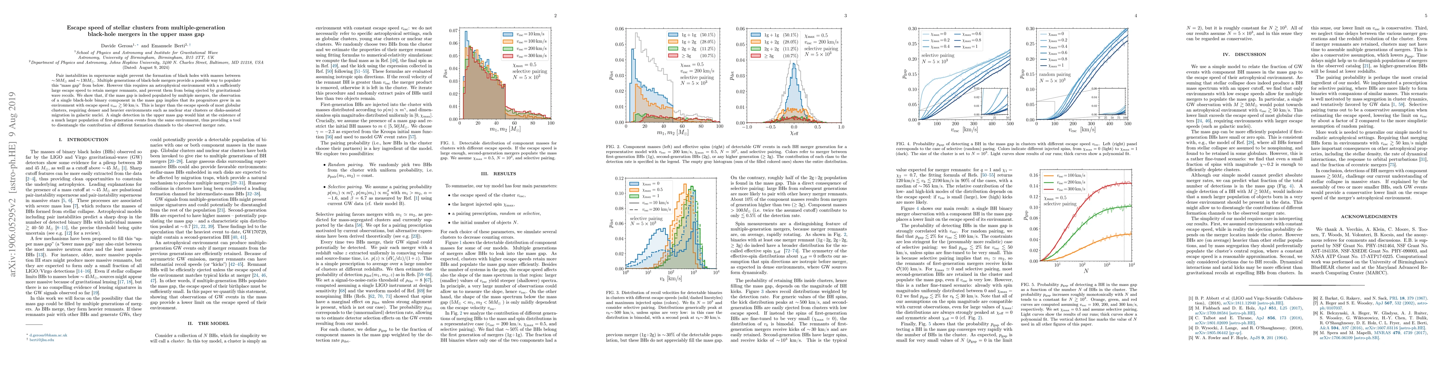 This paper investigates the escape speed required to retain black-hole merger remnants in the upper mass gap, suggesting that dense environments like nuclear star clusters are needed to prevent ejection. A single detection hints at a larger population of first-generation mergers, aiding in understanding different formation channels.