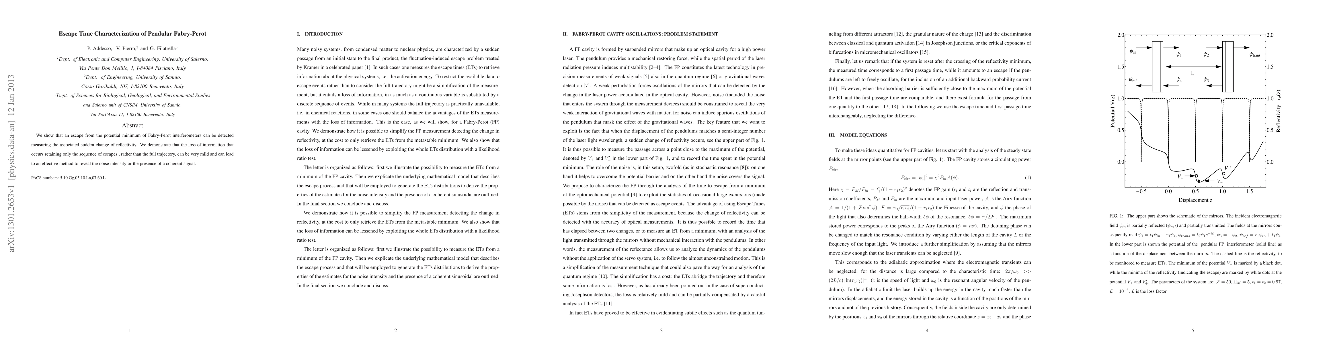 This paper demonstrates a method to detect the escape from the potential minimum in Fabry-Perot interferometers by measuring changes in reflectivity, showing that retaining only escape sequences can still reveal noise intensity or coherent signals with minimal loss of information.
