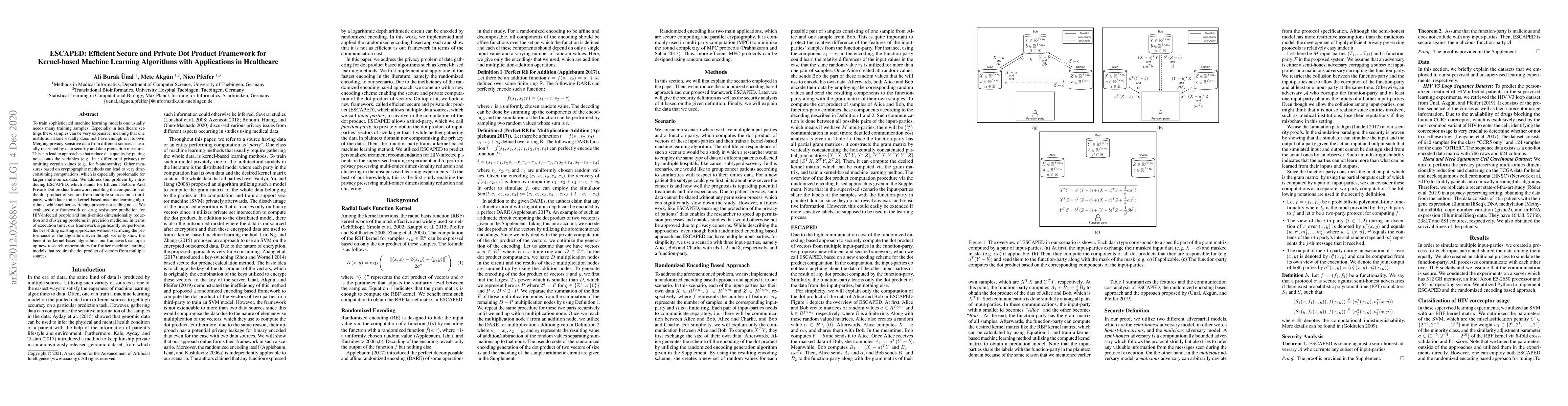 The research introduces ESCAPED, a secure and private dot product framework that enables efficient computation of dot products from multiple data sources for kernel-based machine learning algorithms. It significantly outperforms existing approaches without compromising performance or adding noise, demonstrated through applications in healthcare like drug resistance prediction and multi-omics data analysis.