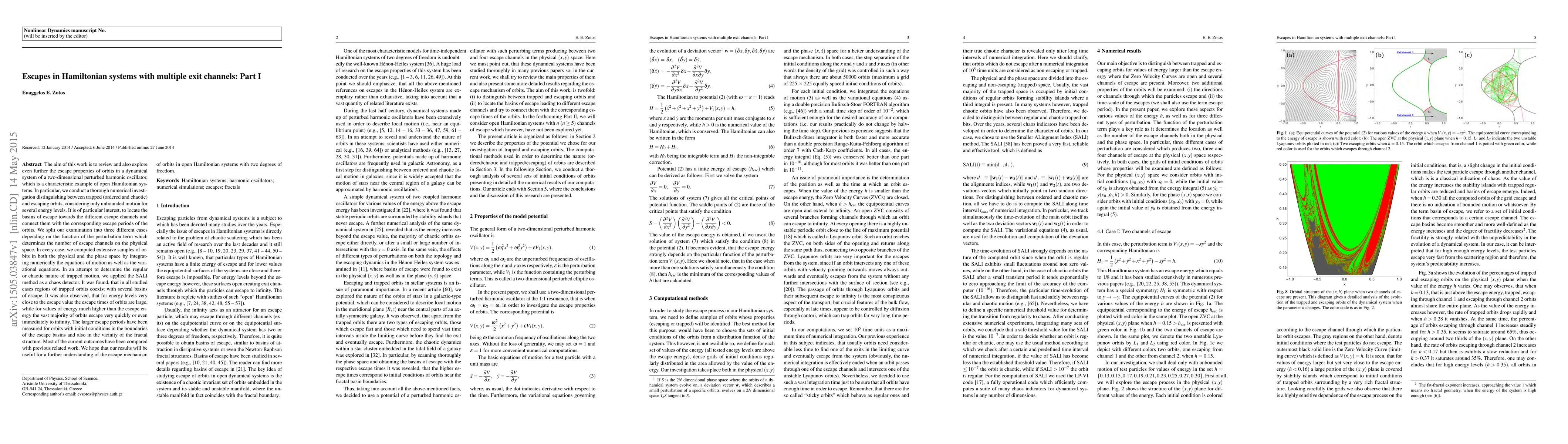 The aim of this work is to review and also explore even further the escape properties of orbits in a dynamical system of a two-dimensional perturbed harmonic oscillator, which is a characteristic example of open Hamiltonian systems. In particular, we conduct a thorough numerical investigation distinguishing between trapped (ordered and chaotic) and escaping orbits, considering only unbounded motion for several energy levels. It is of particular interest, to locate the basins of escape towards the different escape channels and connect them with the corresponding escape periods of the orbits. We split our examination into three different cases depending on the function of the perturbation term which determines the number of escape channels on the physical space. In every case, we computed extensive samples of orbits in both the physical and the phase space by integrating numerically the equations of motion as well as the variational equations. In an attempt to determine the regular or chaotic nature of trapped motion, we applied the SALI method as a chaos detector. It was found, that in all studied cases regions of trapped orbits coexist with several basins of escape. It was also observed, that for energy levels very close to the escape value the escape times of orbits are large, while for values of energy much higher than the escape energy the vast majority of orbits escape very quickly or even immediately to infinity. The larger escape periods have been measured for orbits with initial conditions in the boundaries of the escape basins and also in the vicinity of the fractal structure. Most of the current outcomes have been compared with previous related work. We hope that our results will be useful for a further understanding of the escape mechanism of orbits in open Hamiltonian systems with two degrees of freedom.