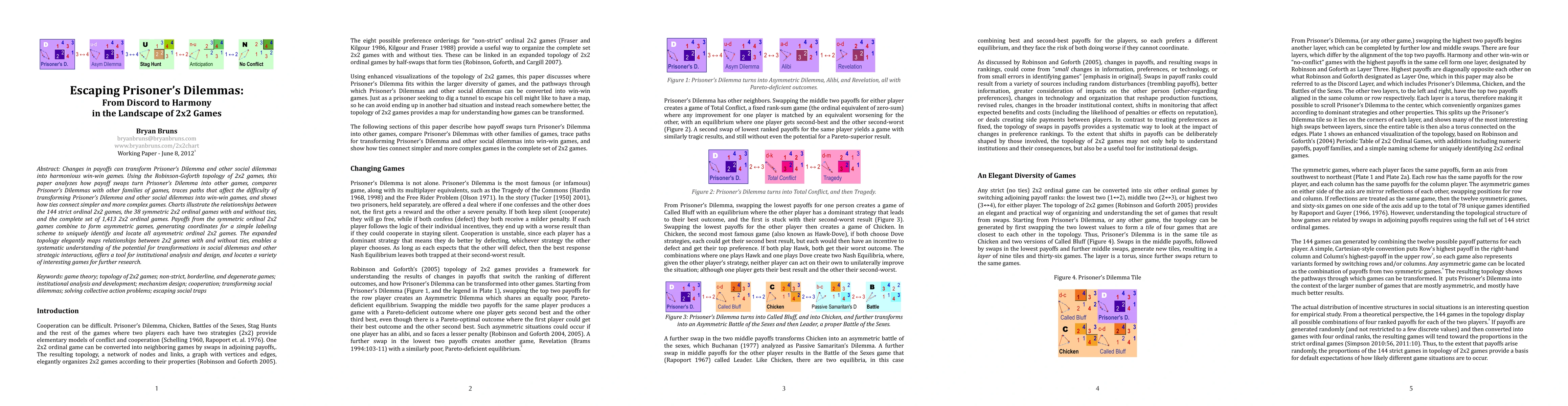 This paper explores how altering payoffs in 2x2 games can convert Prisoner's Dilemma into win-win scenarios, using the Robinson-Goforth topology to analyze transformations and relationships among various game types. It provides a comprehensive mapping of 2x2 games, offering insights into strategic interactions and potential for institutional design.