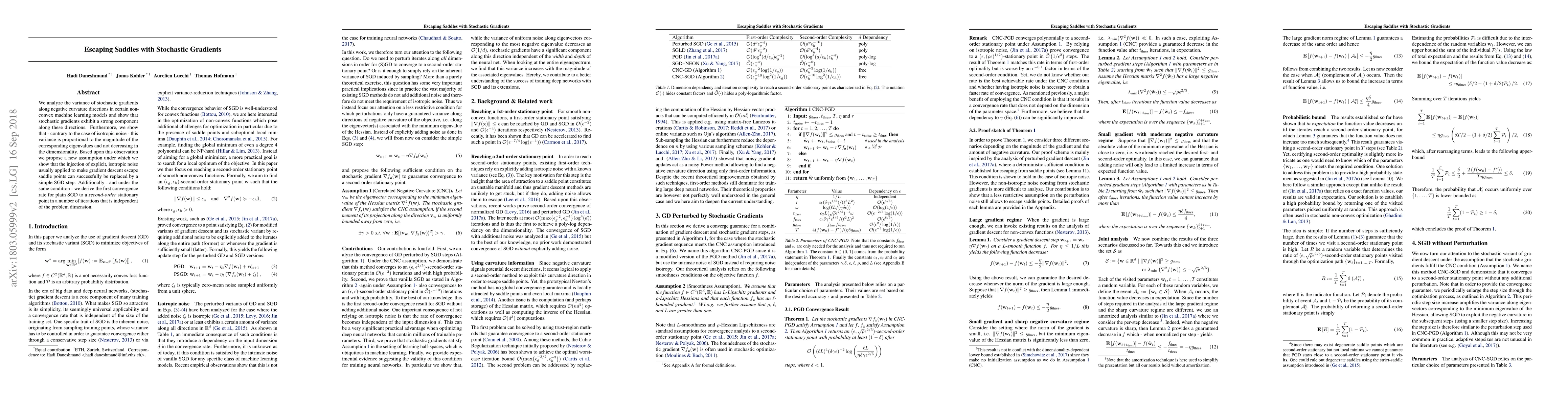 Researchers show that stochastic gradients have a significant component along negative curvature directions in non-convex machine learning models, suggesting that explicit noise may not always be necessary to escape saddle points.
