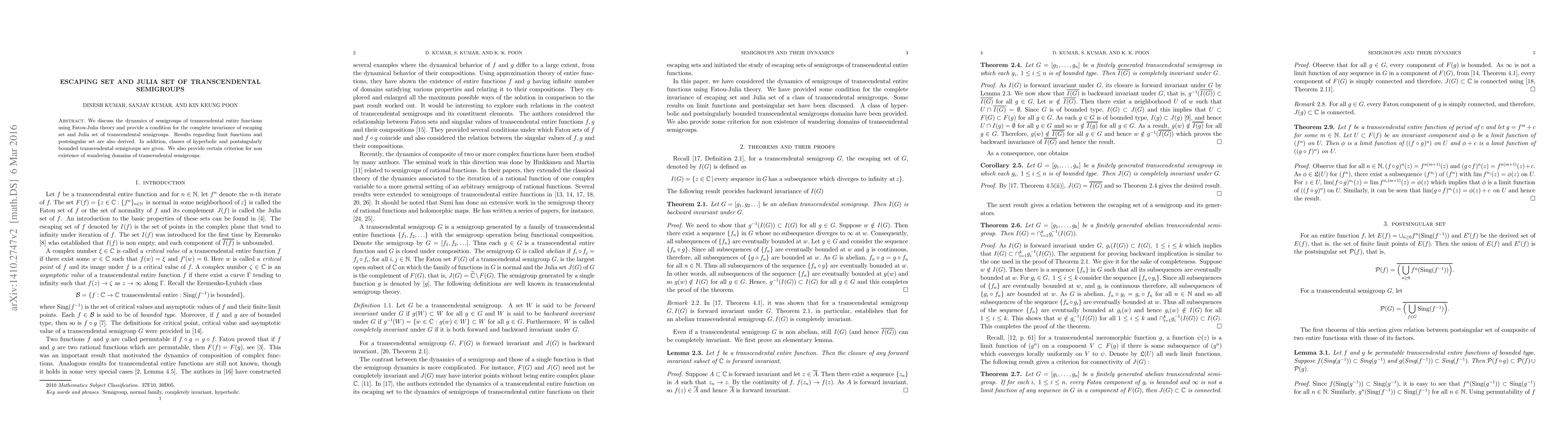 This paper examines the dynamics of transcendental entire function semigroups using Fatou-Julia theory, offering conditions for the invariance of escaping and Julia sets. It also discusses limit functions, postsingular sets, and introduces classes of hyperbolic and postsingularly bounded semigroups, along with criteria for the non-existence of wandering domains.