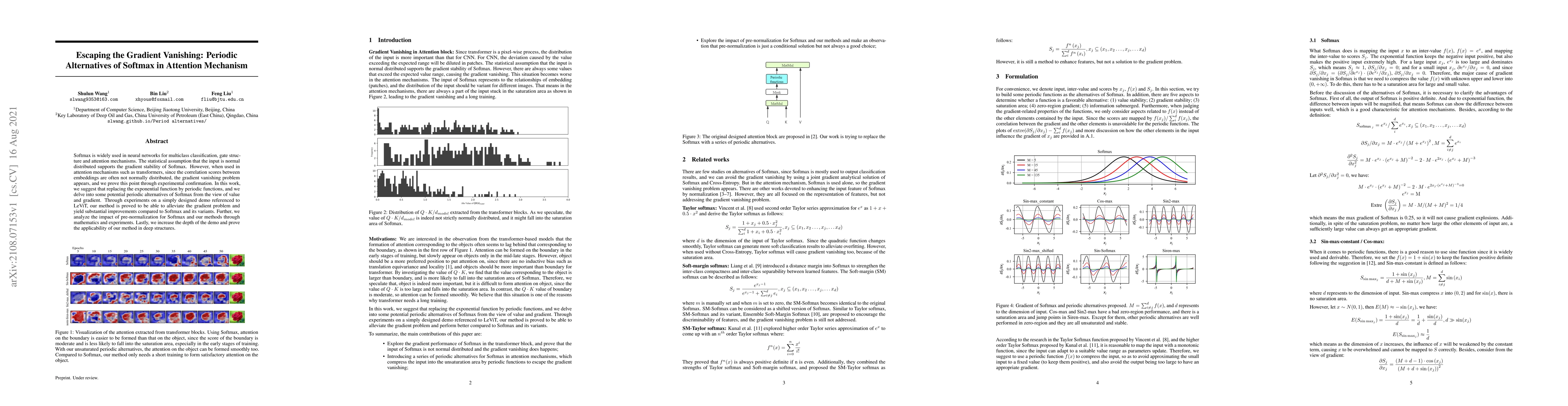 This paper proposes periodic alternatives to the softmax function to mitigate the gradient vanishing problem in attention mechanisms, demonstrating improved performance through experiments on a demo model. The study also analyzes the impact of pre-normalization and proves the effectiveness of the proposed method in deep neural network structures.