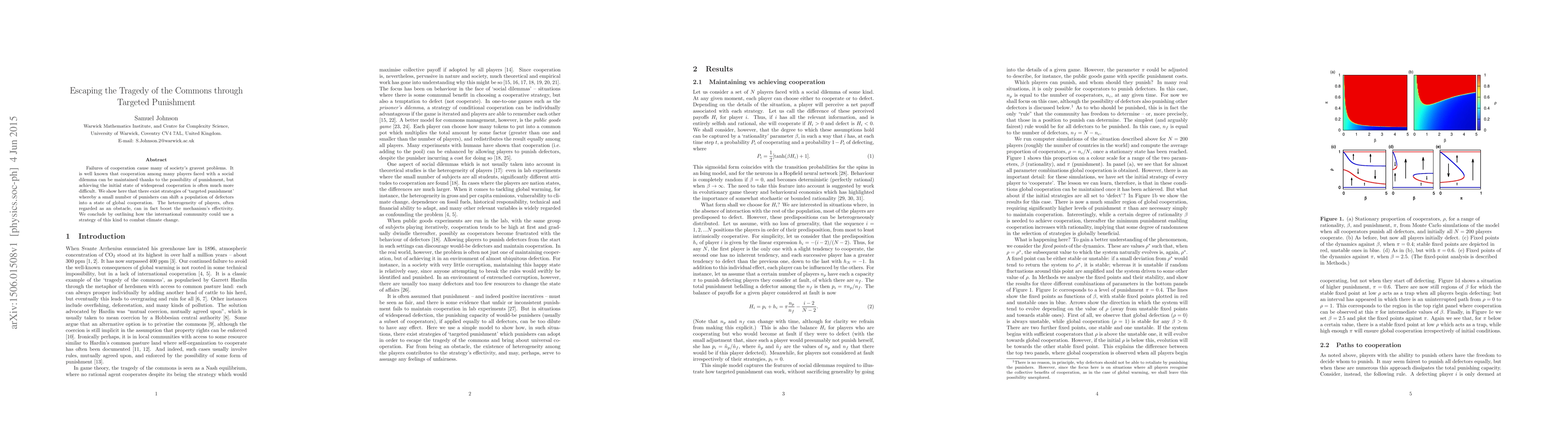 This paper demonstrates that targeted punishment by a small group can effectively shift a population from defectors to global cooperation, even when players are heterogeneous. It suggests this strategy could be applied by the international community to combat climate change.