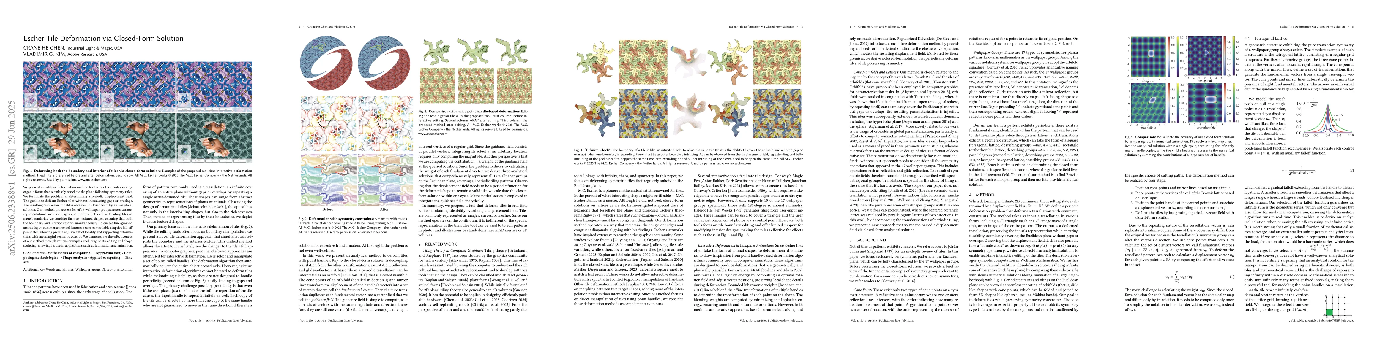 We present a real-time deformation method for Escher tiles -- interlocking organic forms that seamlessly tessellate the plane following symmetry rules. We formulate the problem as determining a periodic displacement field. The goal is to deform Escher tiles without introducing gaps or overlaps. The resulting displacement field is obtained in closed form by an analytical solution. Our method processes tiles of 17 wallpaper groups across various representations such as images and meshes. Rather than treating tiles as mere boundaries, we consider them as textured shapes, ensuring that both the boundary and interior deform simultaneously. To enable fine-grained artistic input, our interactive tool features a user-controllable adaptive fall-off parameter, allowing precise adjustment of locality and supporting deformations with meaningful semantic control. We demonstrate the effectiveness of our method through various examples, including photo editing and shape sculpting, showing its use in applications such as fabrication and animation.