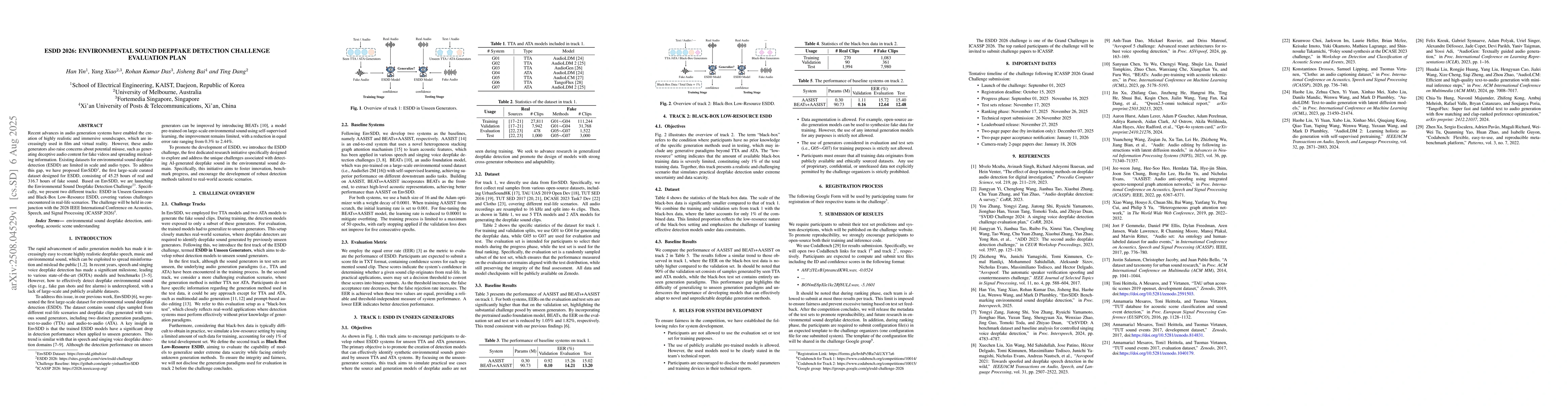 Recent advances in audio generation systems have enabled the creation of highly realistic and immersive soundscapes, which are increasingly used in film and virtual reality. However, these audio generators also raise concerns about potential misuse, such as generating deceptive audio content for fake videos and spreading misleading information. Existing datasets for environmental sound deepfake detection (ESDD) are limited in scale and audio types. To address this gap, we have proposed EnvSDD, the first large-scale curated dataset designed for ESDD, consisting of 45.25 hours of real and 316.7 hours of fake sound. Based on EnvSDD, we are launching the Environmental Sound Deepfake Detection Challenge. Specifically, we present two different tracks: ESDD in Unseen Generators and Black-Box Low-Resource ESDD, covering various challenges encountered in real-life scenarios. The challenge will be held in conjunction with the 2026 IEEE International Conference on Acoustics, Speech, and Signal Processing (ICASSP 2026).