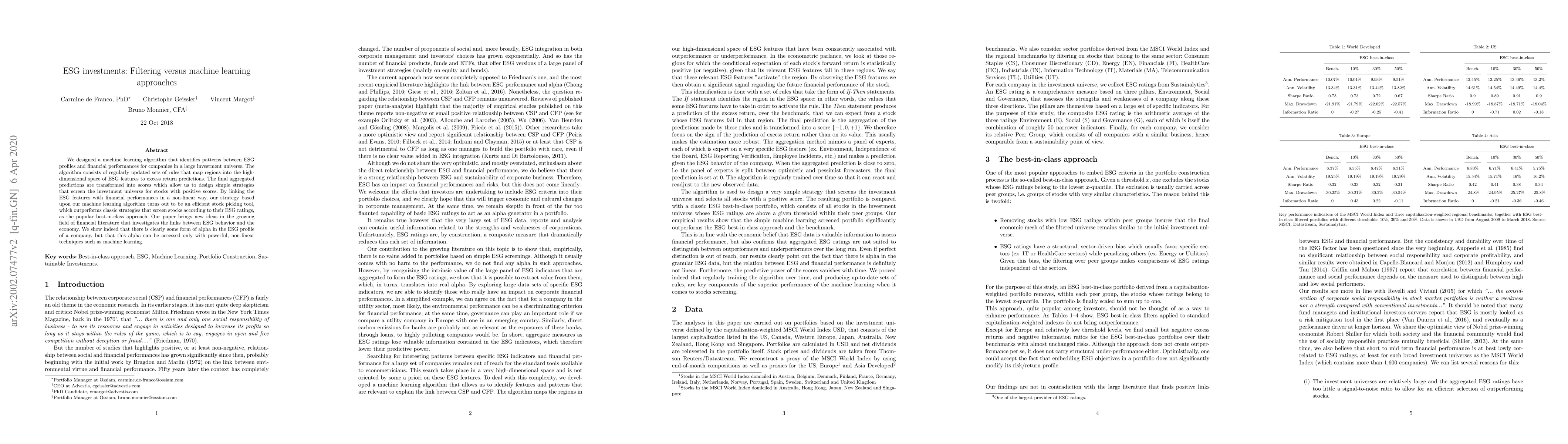 This research introduces a machine learning algorithm to identify patterns between ESG profiles and financial performance, demonstrating that it outperforms traditional ESG-based screening methods. The study suggests that non-linear techniques like machine learning are essential to uncover the "alpha" in ESG profiles, thus providing a more effective stock-picking tool.