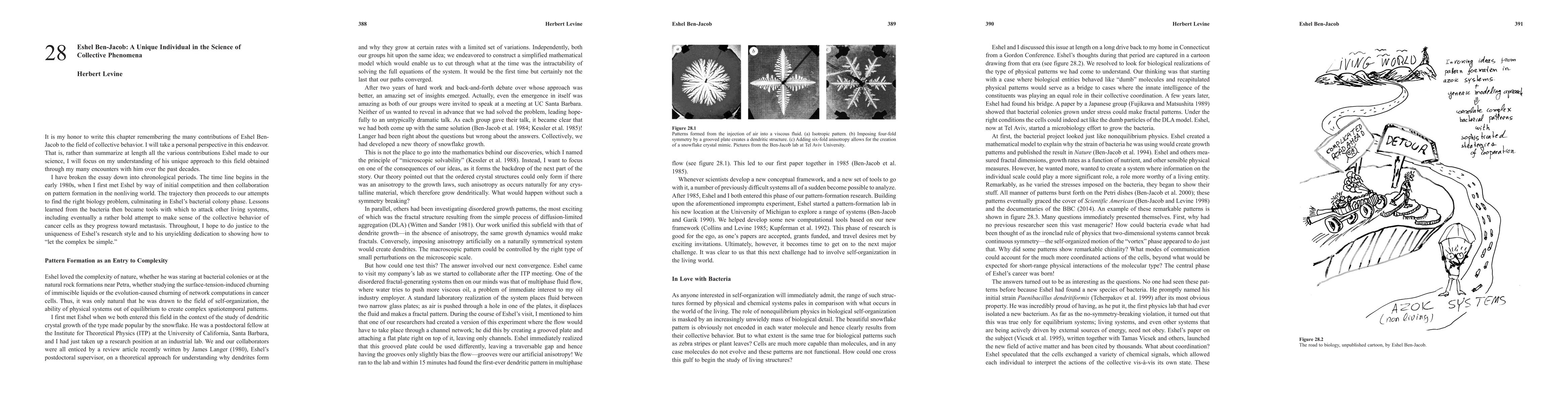 Eshel Ben-Jacob, one of the co-organizers of this meeting on collective behavior and one of the pioneers in the field of collective behavior in biology, passed away suddenly just before we convened. This article presents a brief glimpse of Eshel's life-long path through science, seen from the perspective of a decades long collaboration on many disparate yet ultimately connected topics. The article attempts to convey how the concept of self-organization of complex interacting objects into higher order functional units, as evidenced so wonderfully by Eshel's experiments on bacterial colony formation, provides a unifying theme for the study of collective behavior. Our entire field will miss his unique ability to "let the complex become simple".