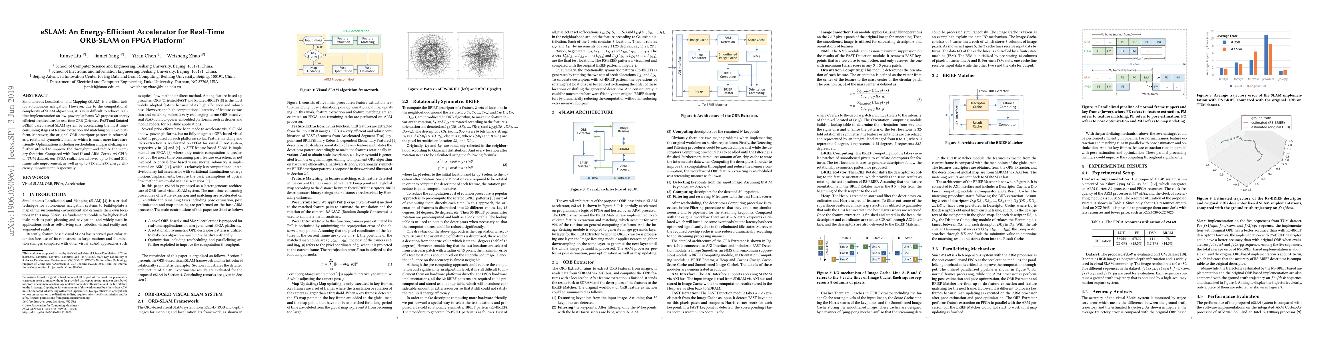 This paper presents an energy-efficient FPGA-based accelerator for real-time ORB-SLAM, optimizing feature extraction and matching stages to achieve significant improvements in frame rate and energy efficiency compared to CPU implementations. The reformulated ORB descriptor and parallel optimizations enhance throughput and reduce memory usage.